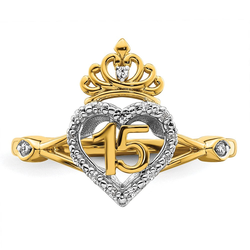 14K Two-tone Polished Diamond Quinceanera Heart/Crown Ring