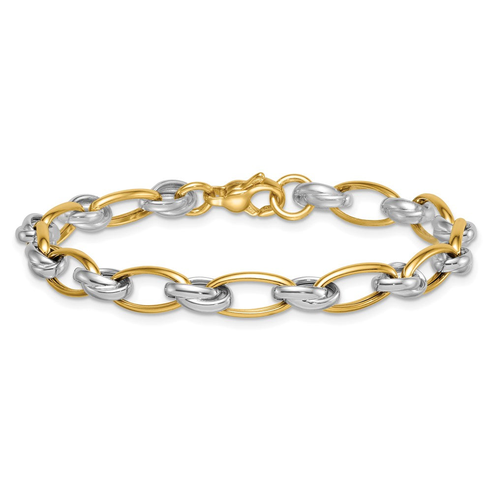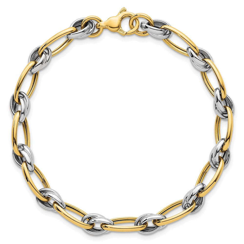 14k Two-tone Polished Fancy Oval Chain 7. Bracelet