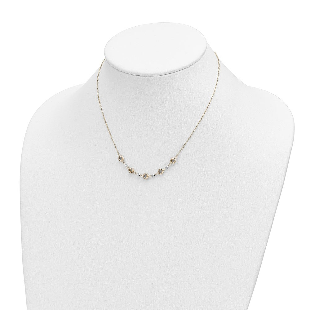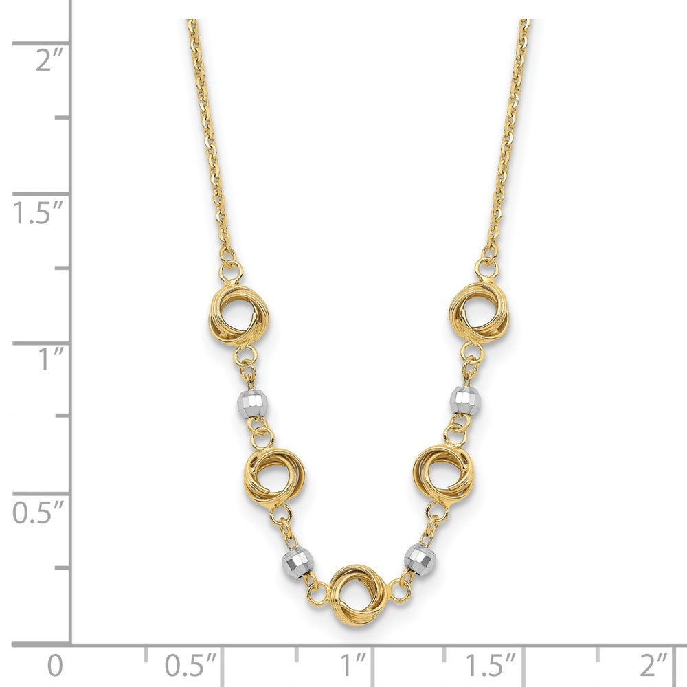 14K Two-tone Polished Love Knots with Mirror Beads Necklace Plus Extender