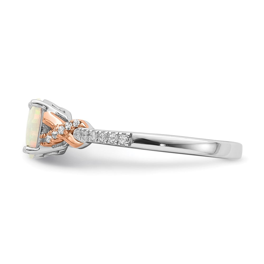 14k Two-tone Polished Oval Opal & Diamond Ring