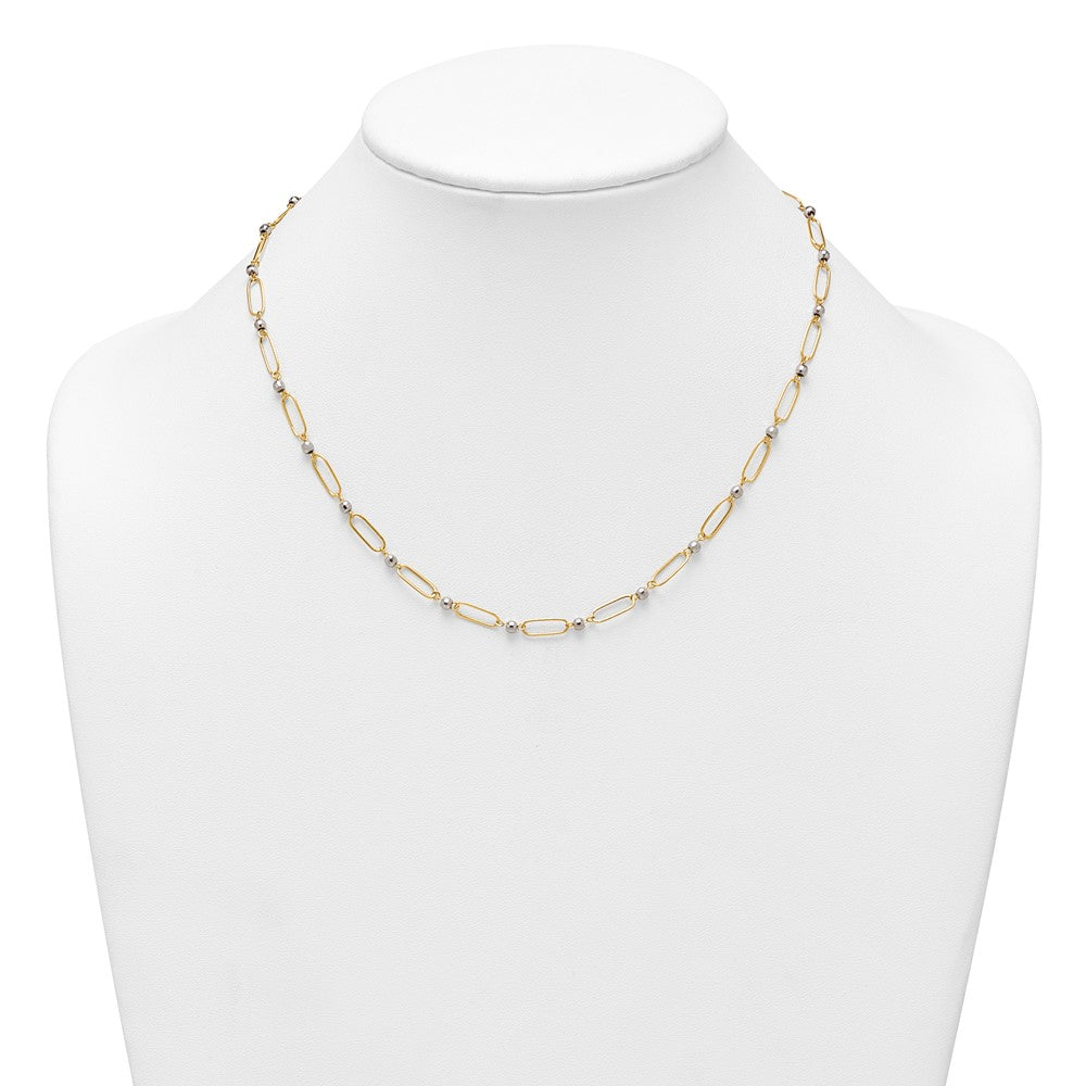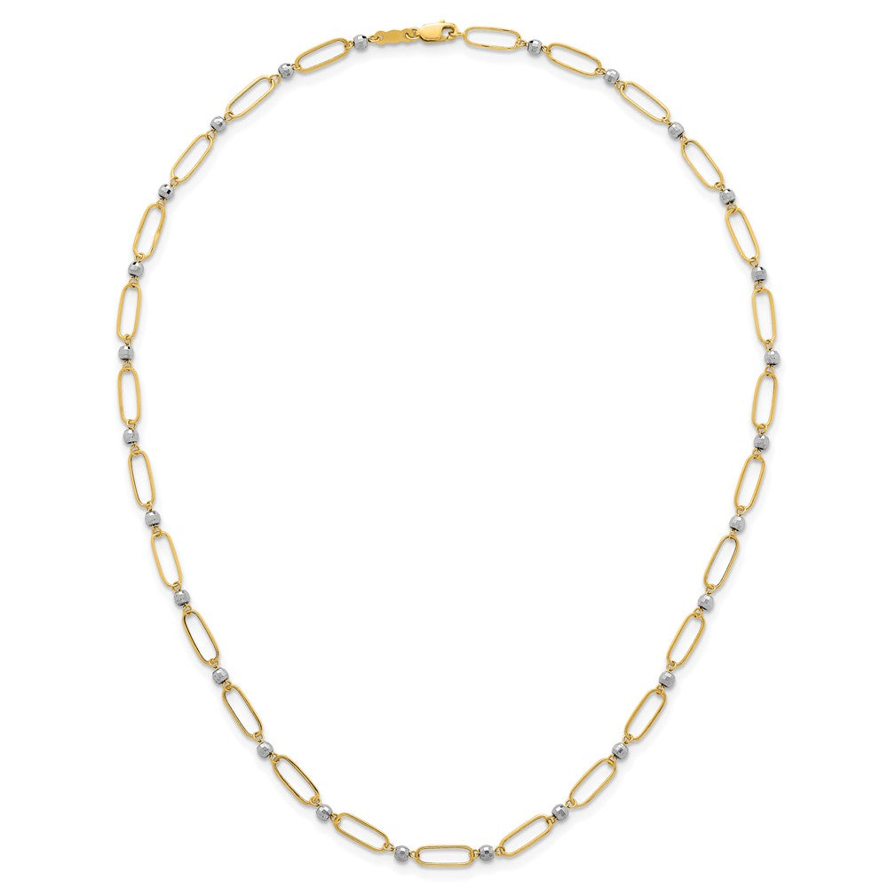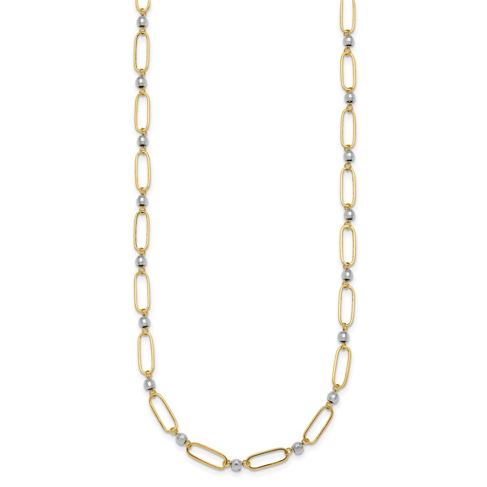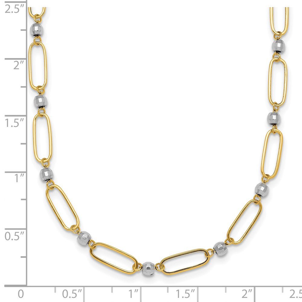 14k Two-tone Polished Paperclip Links and Faceted Beads Necklace