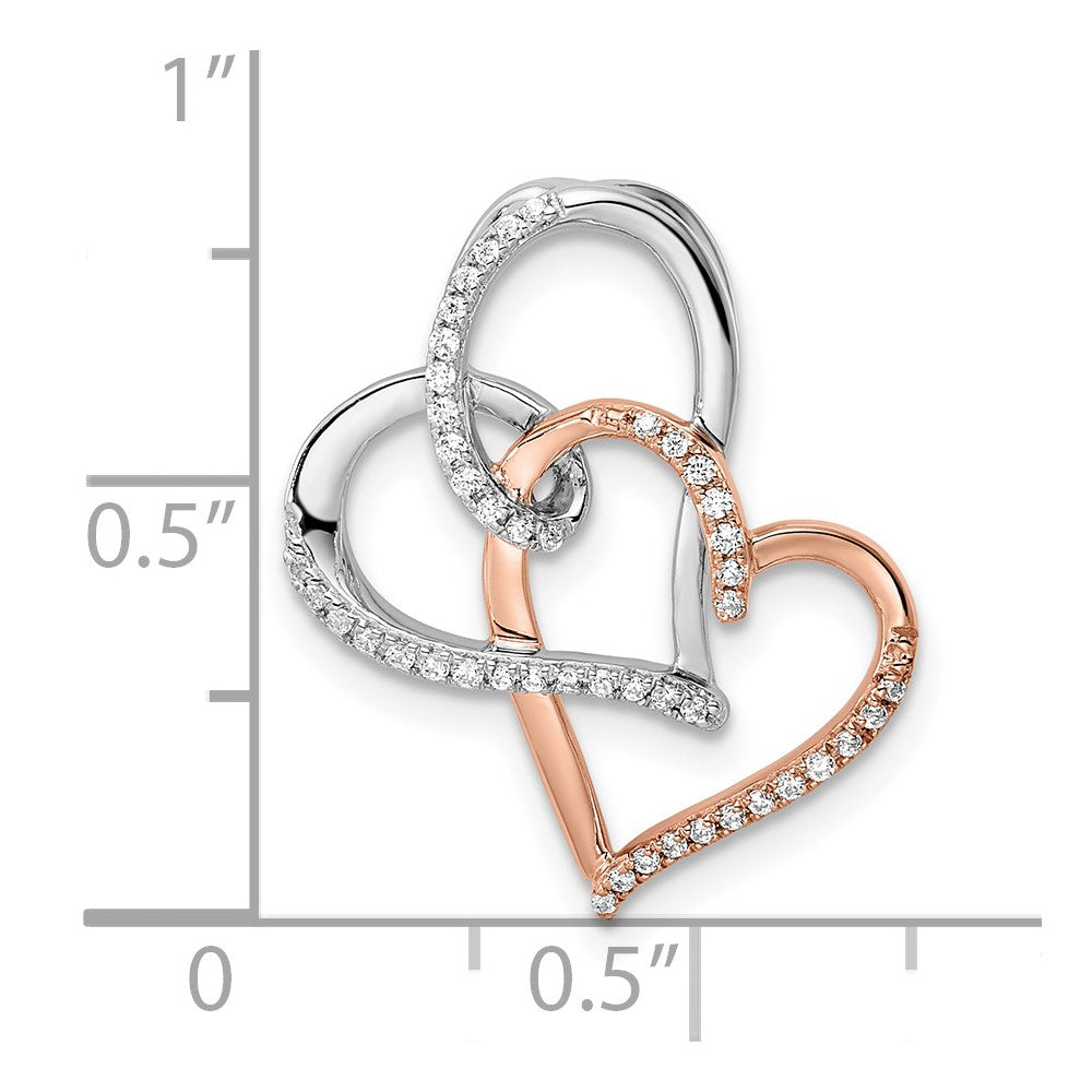 14k Two-tone White and Rose Double Heart Diamond Chain Slide