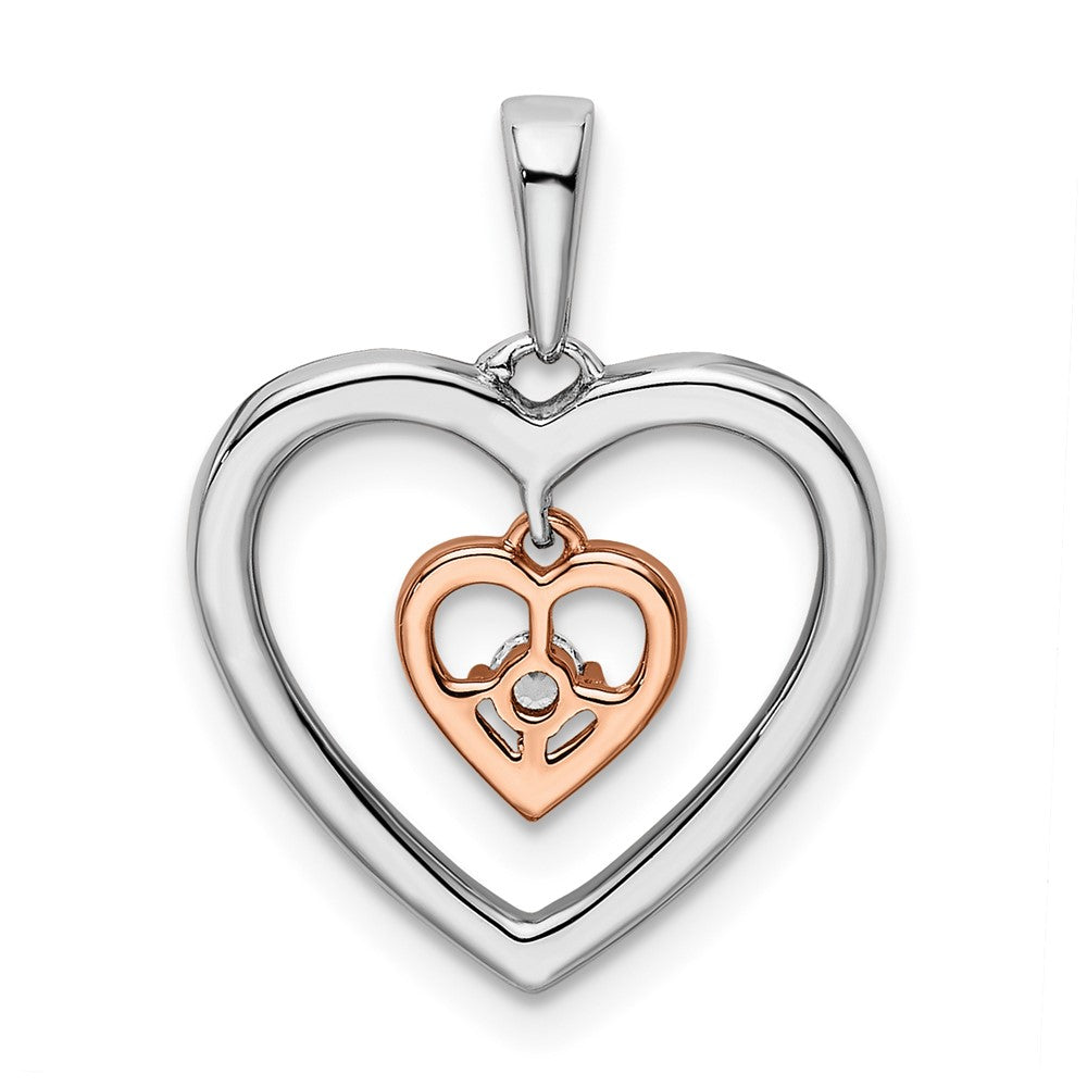 14k Two-tone White and Rose Double Heart Diamond Pendant