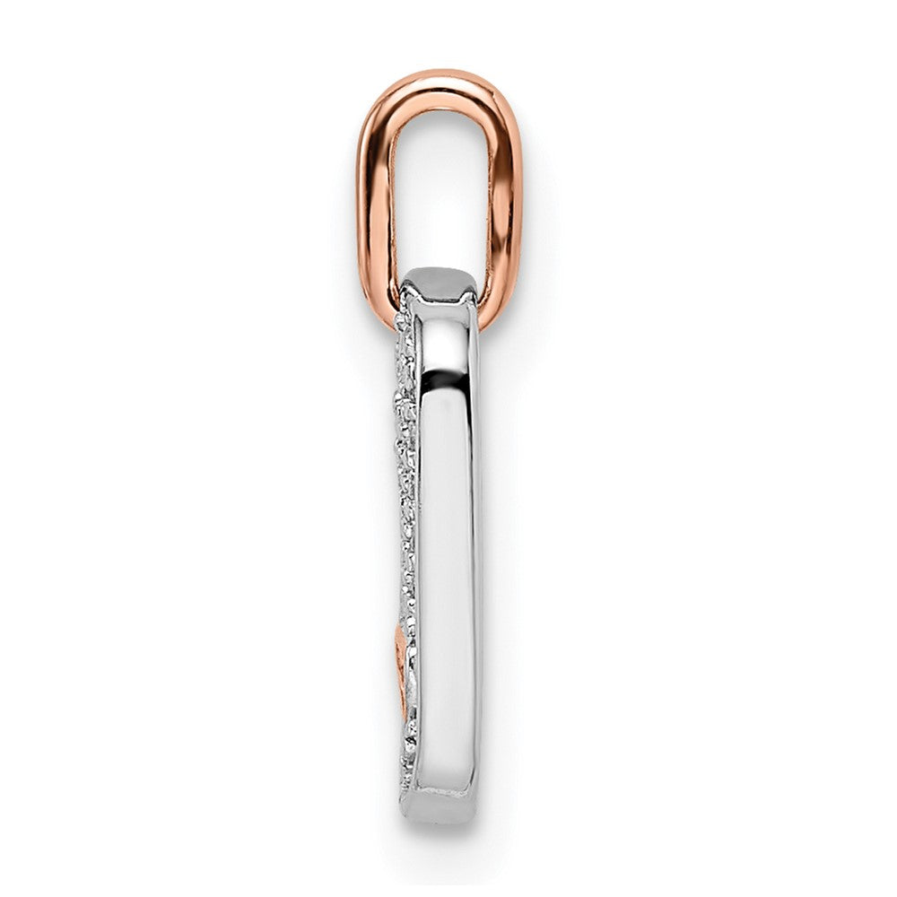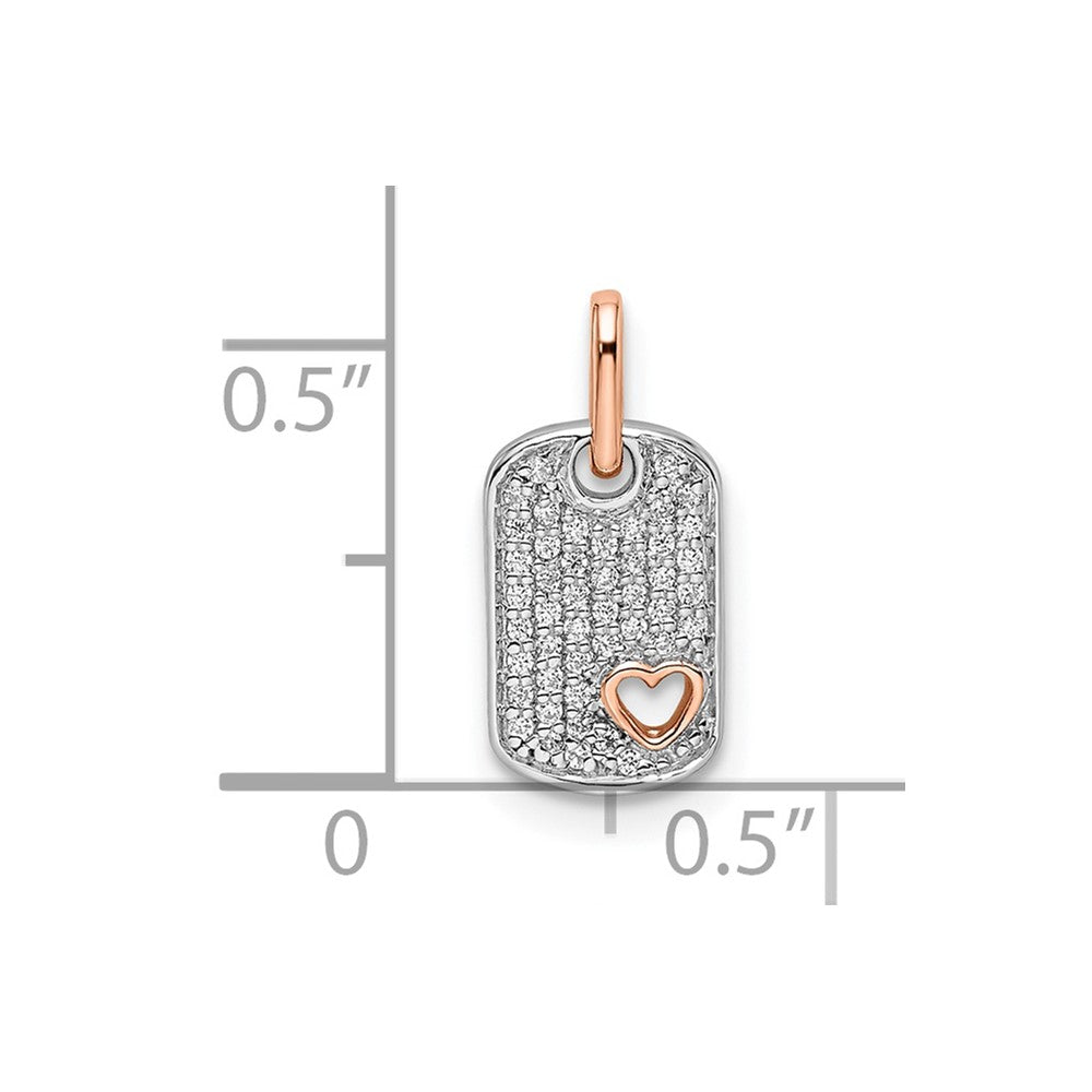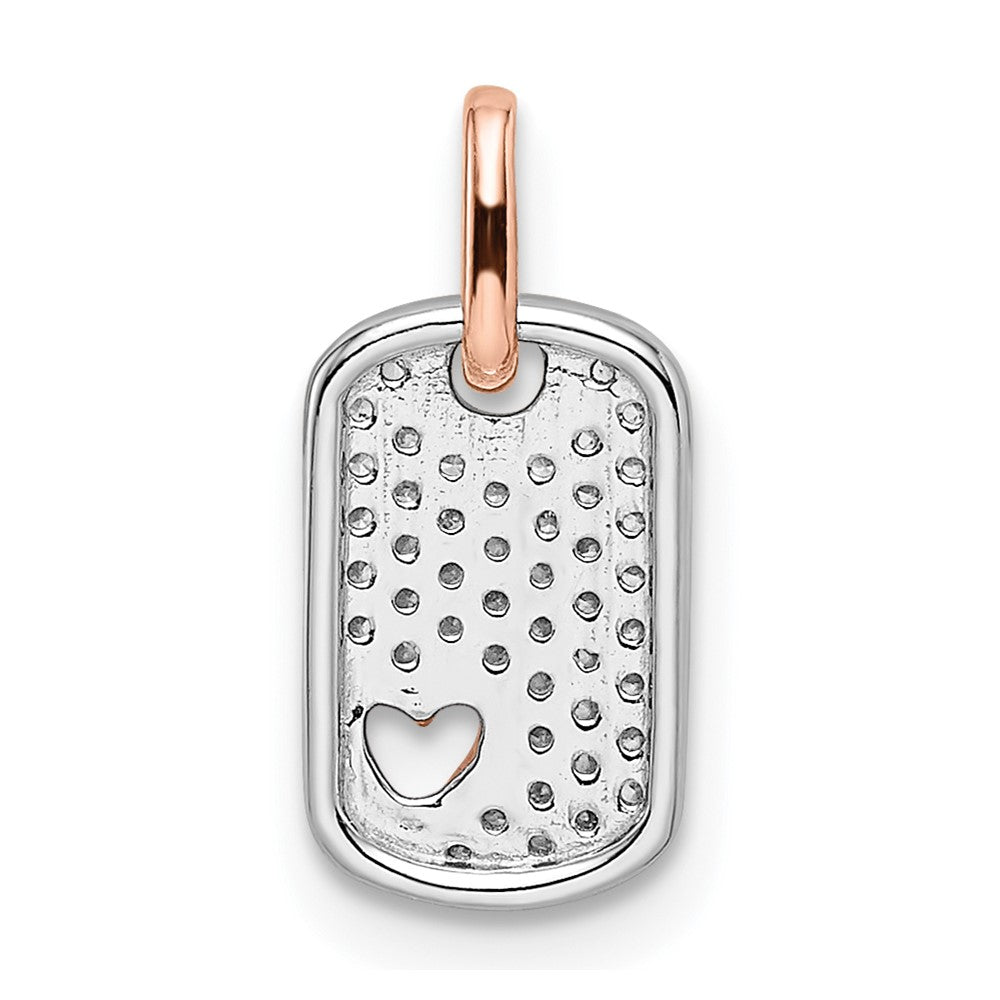 14k Two-tone White and Rose Small Dog Tag w/Heart Diamond Pendant