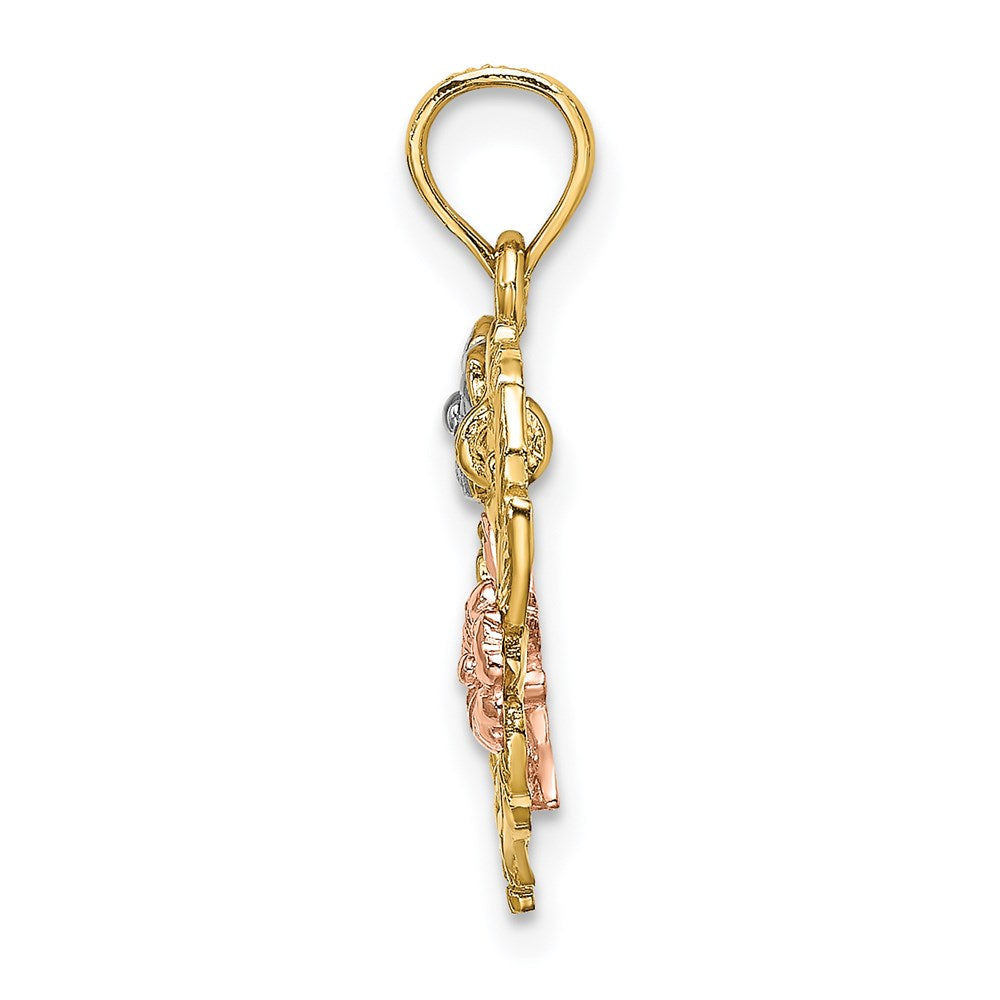 14k Two-tone White Rhodium Motherly Love w/ Flowers In Heart Charm