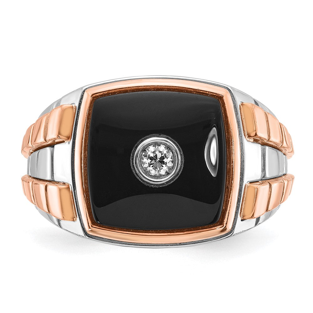 14k Two-tone White/Rose IBGoodman Men's Onyx and 1/10 carat Diamond Complete Ring