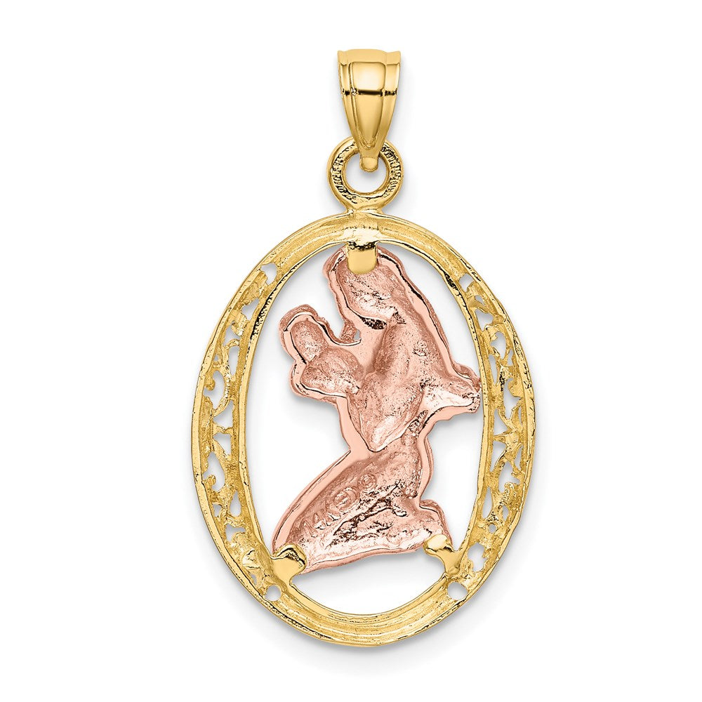 14k Two-tone WIth White Rhodium Mother and Baby In Oval Frame Charm