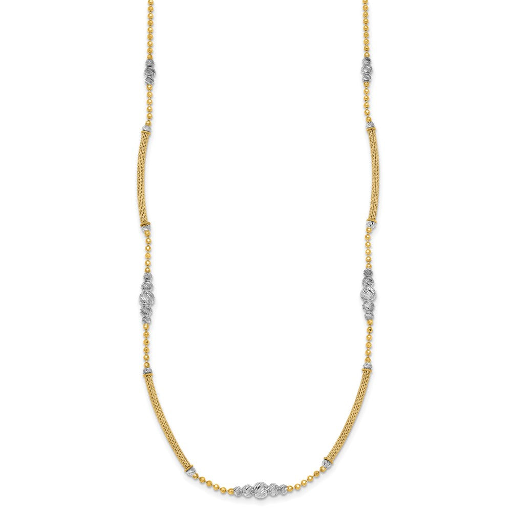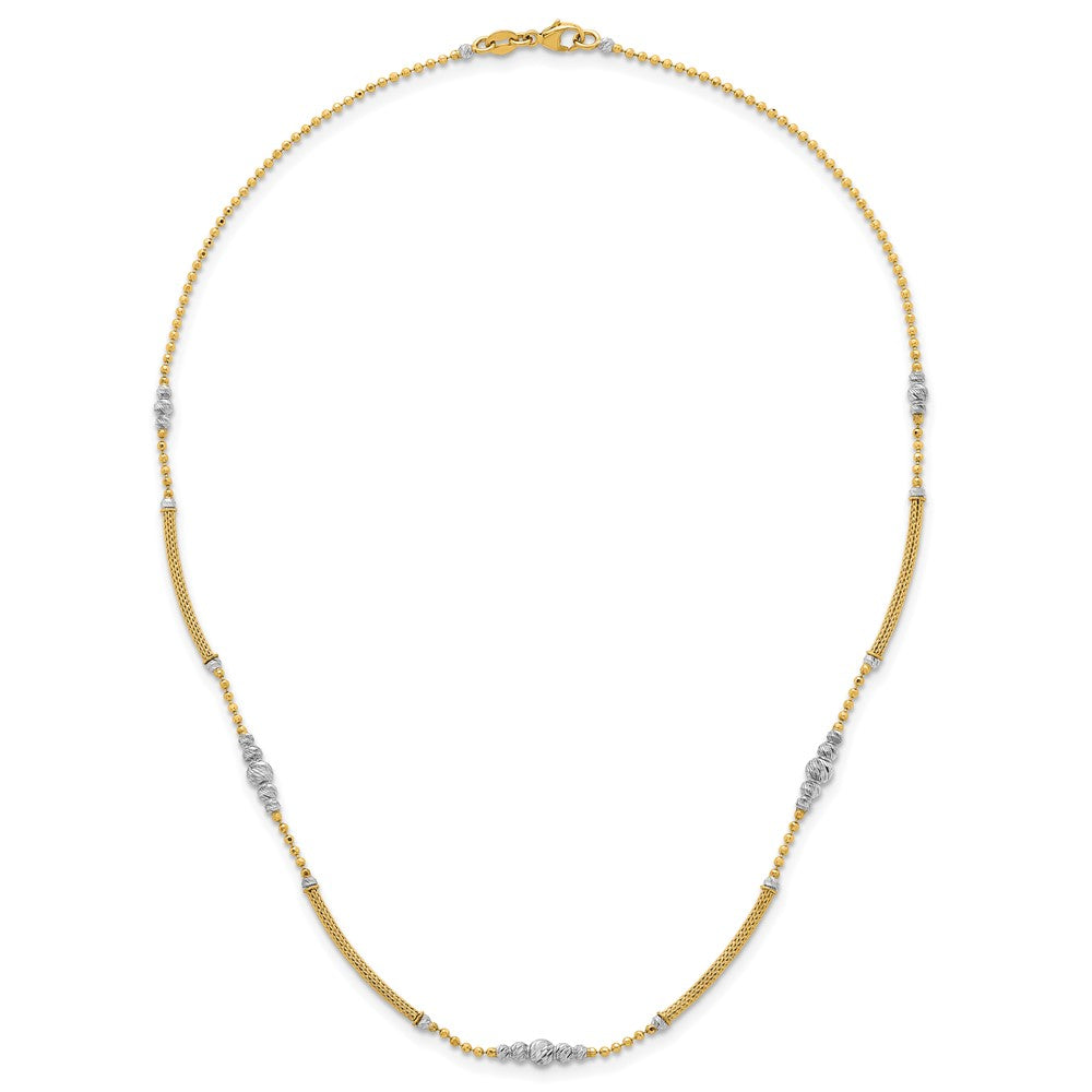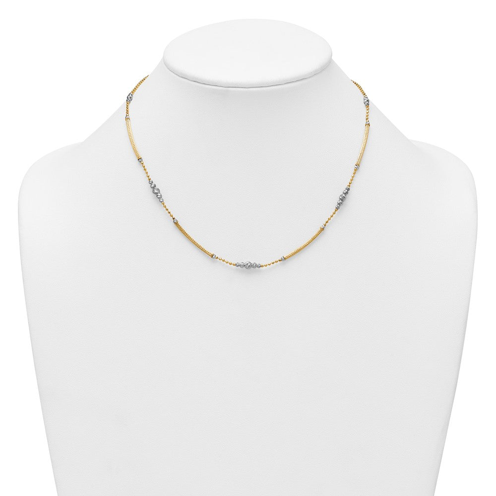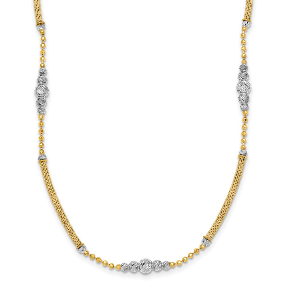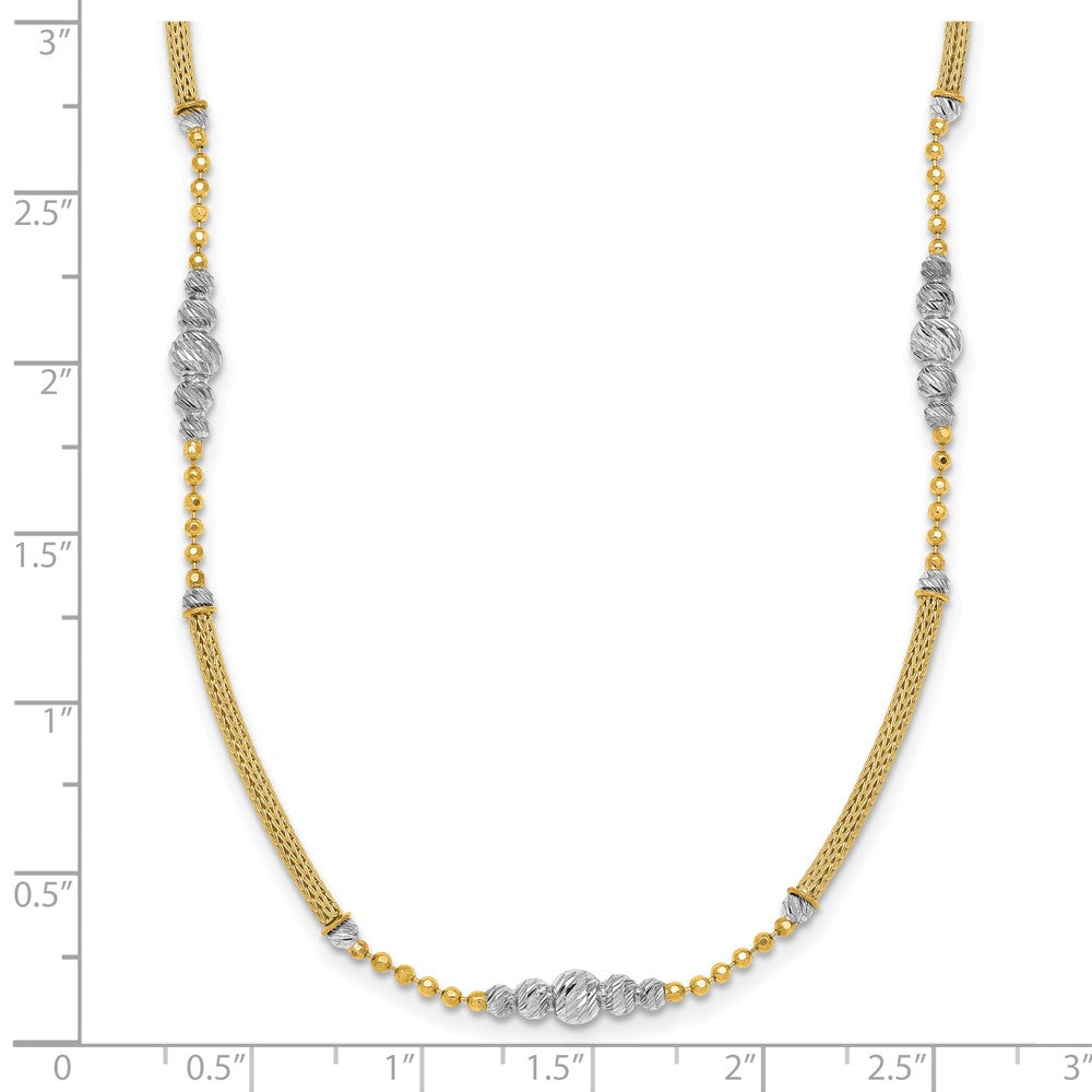 14k Two-Tone Woven Bars and Diamond-cut Beads 16. Necklace