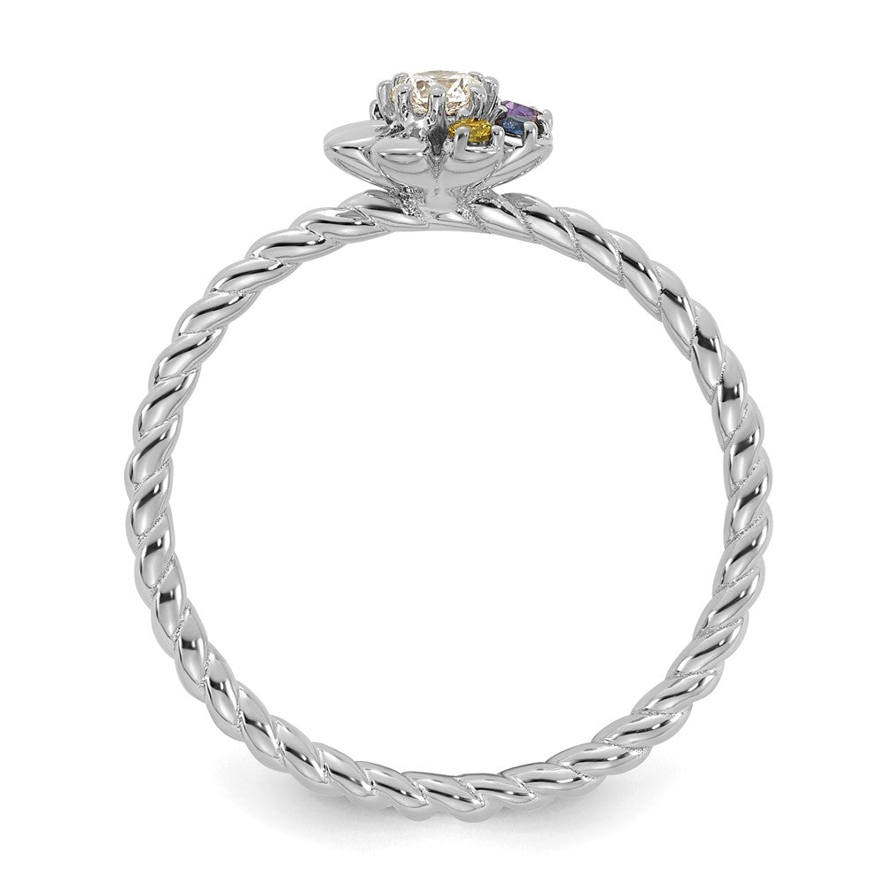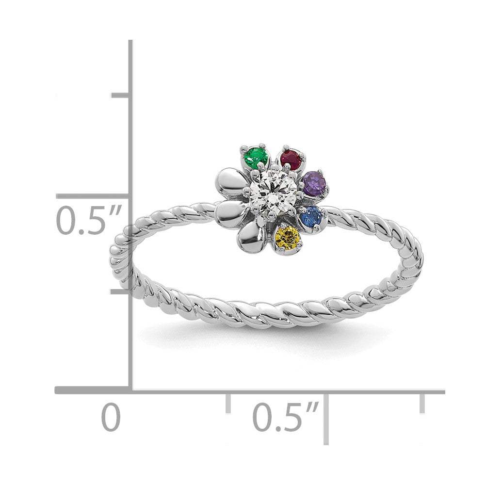 14k WG 5 Birthstone Flower w/ Diamond Mother's Ring Semi Mount