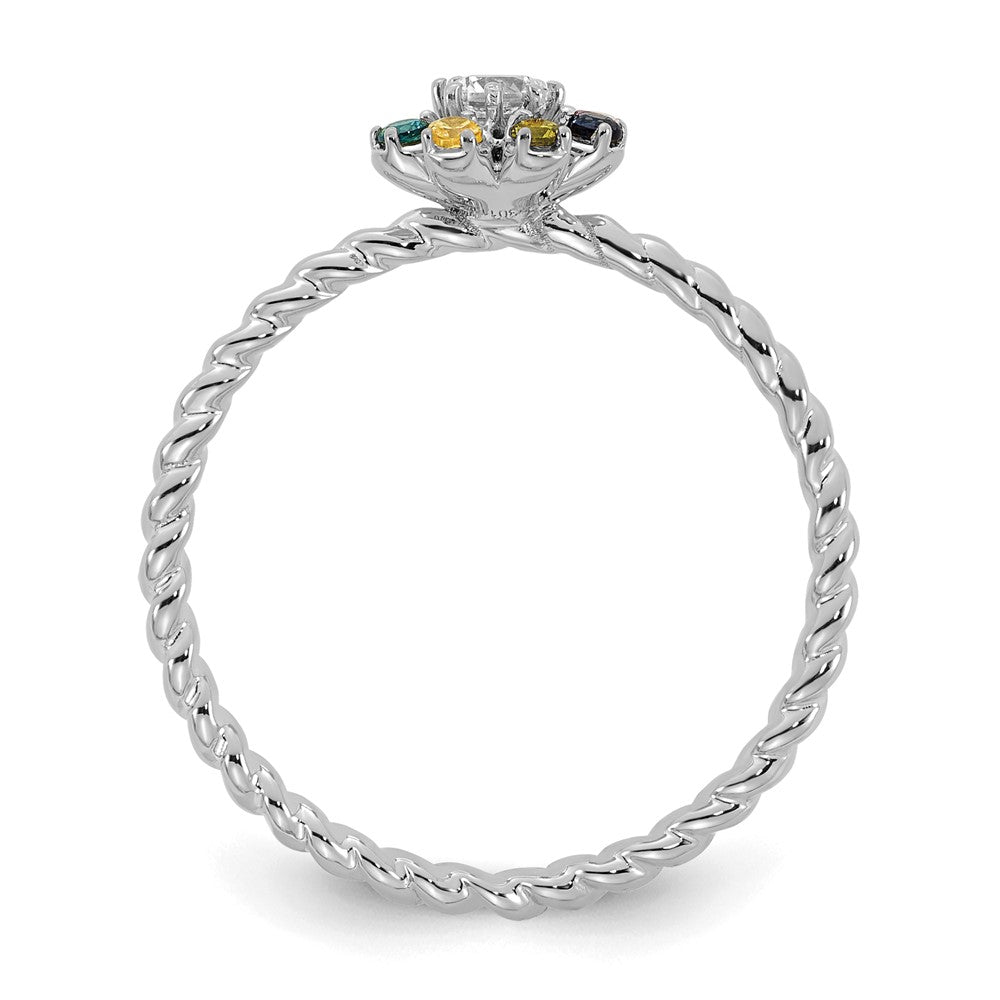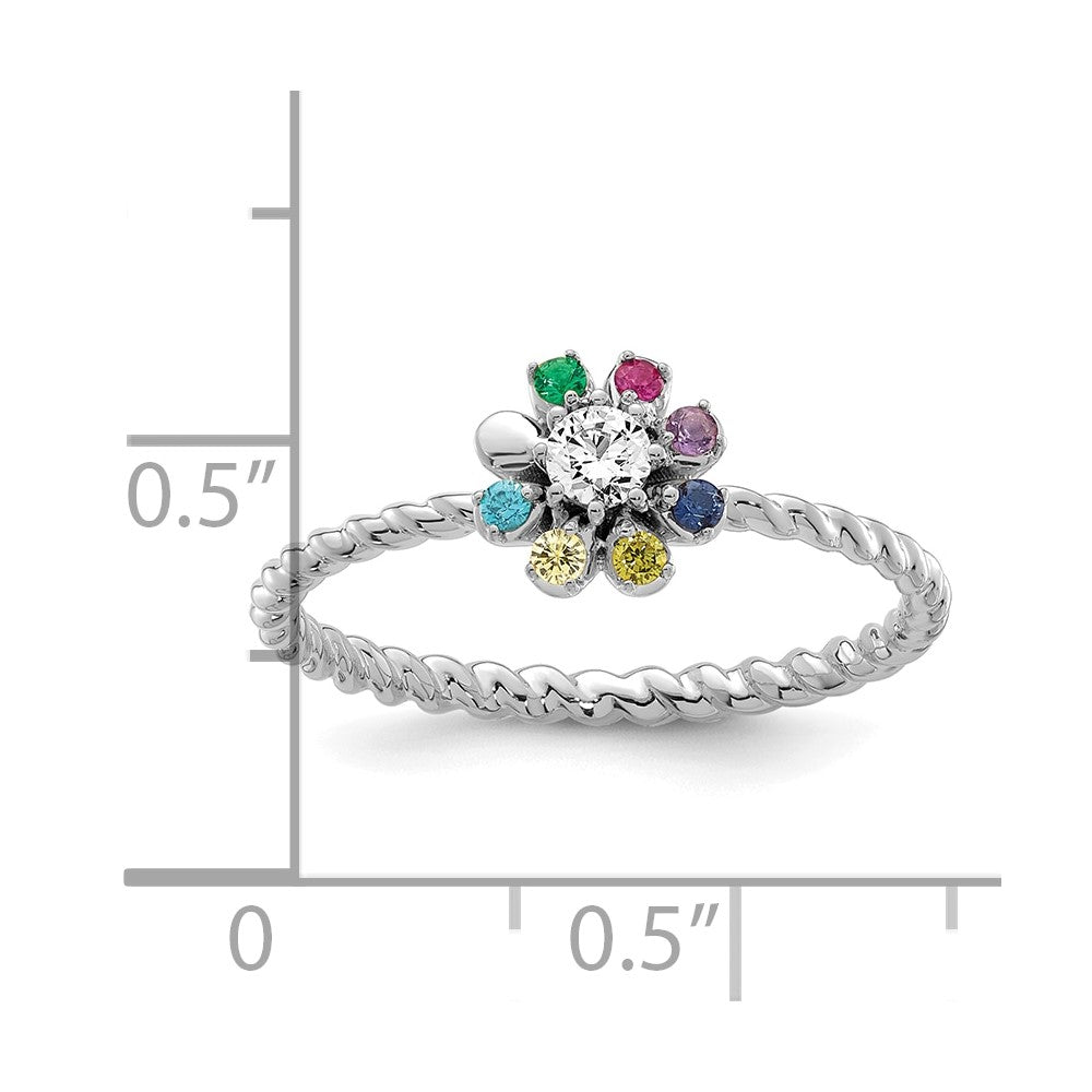 14k WG 7 Birthstone Flower w/ Diamond Mother's Ring Semi-mount