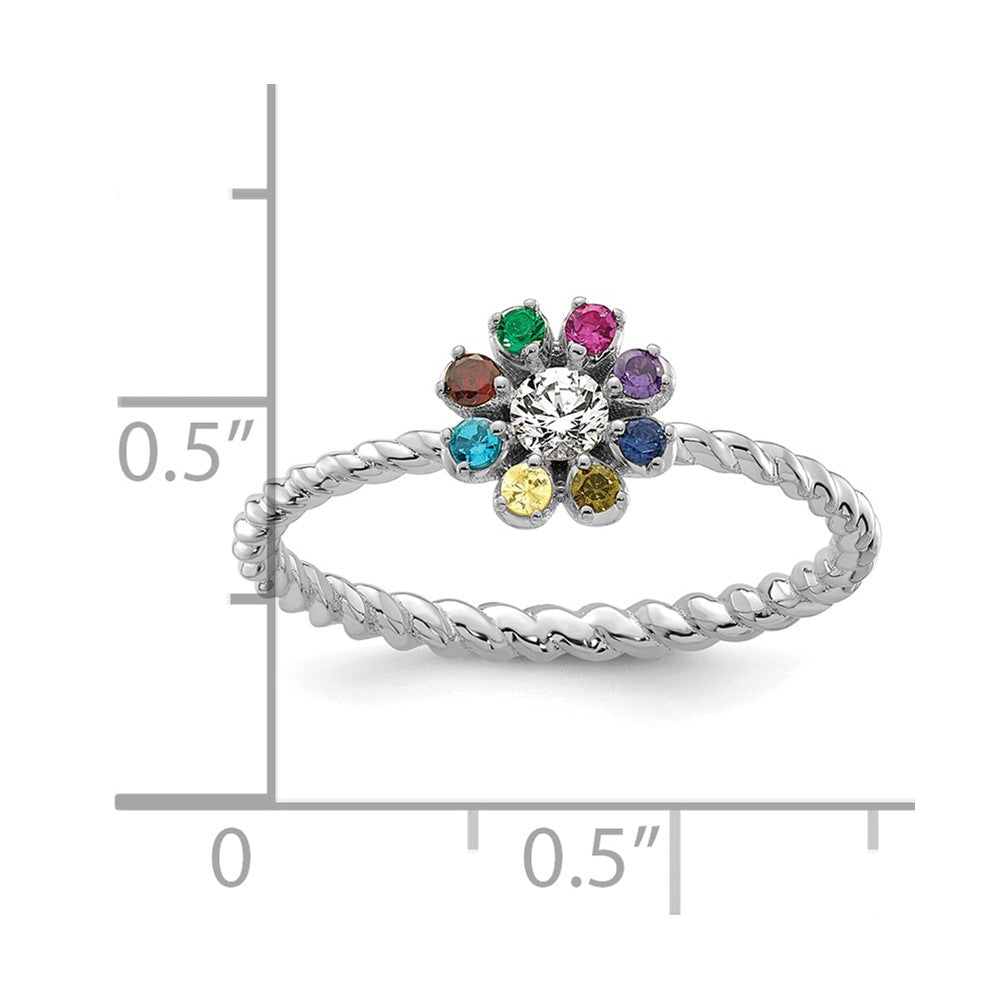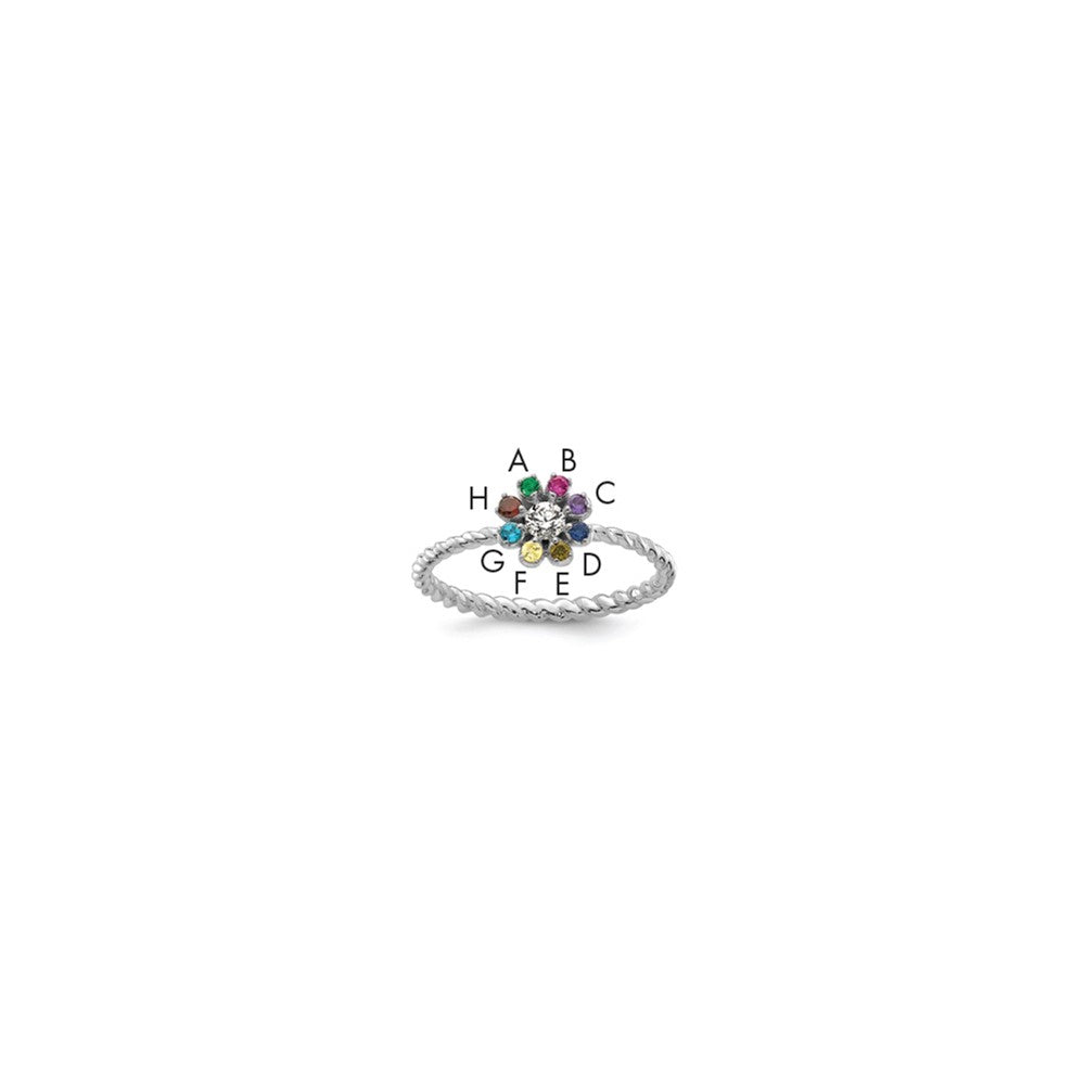14k WG 8 Birthstone Flower w/ Diamond Mother's Ring Semi-mount