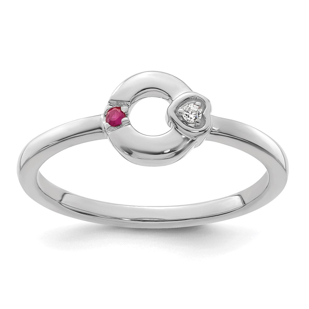 14k WG Dia. Heart w/ 1 Birthstone Mother's Circle Ring Semi-mount