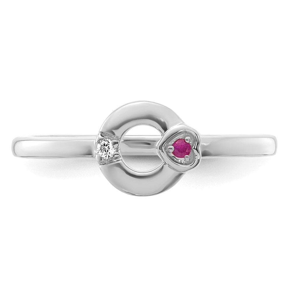 14k WG Dia. Heart w/ 1 Synthetic Birthstone Mother's Circle Ring