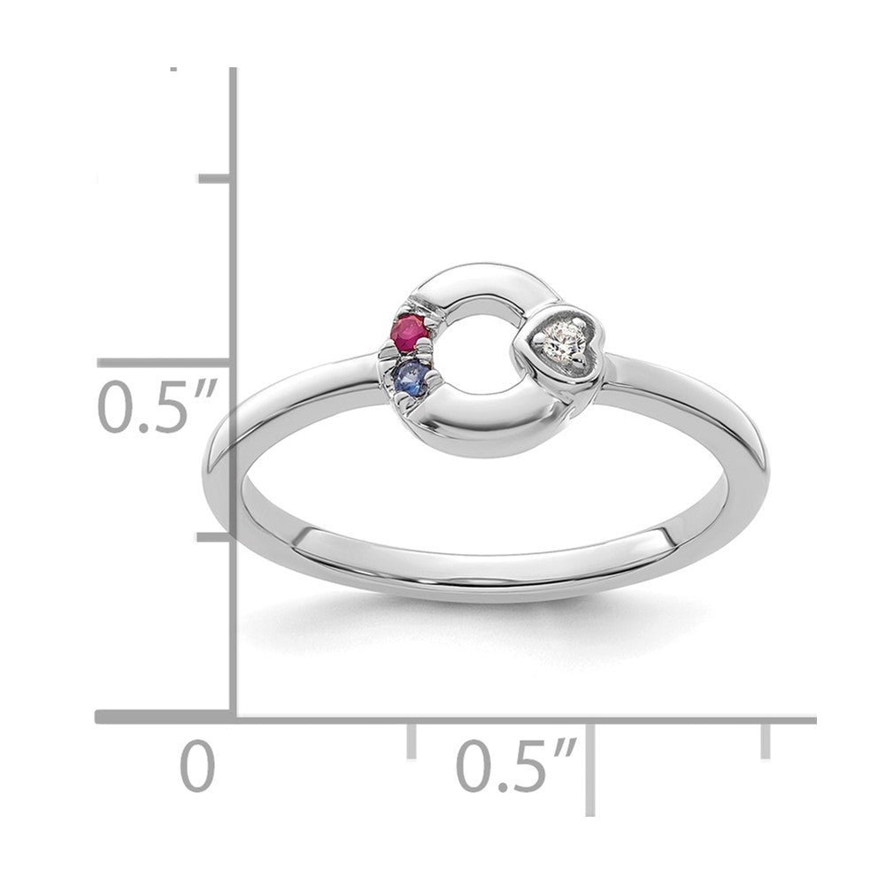 14k WG Dia. Heart w/ 2 Birthstone Mother's Circle Ring Semi-mount