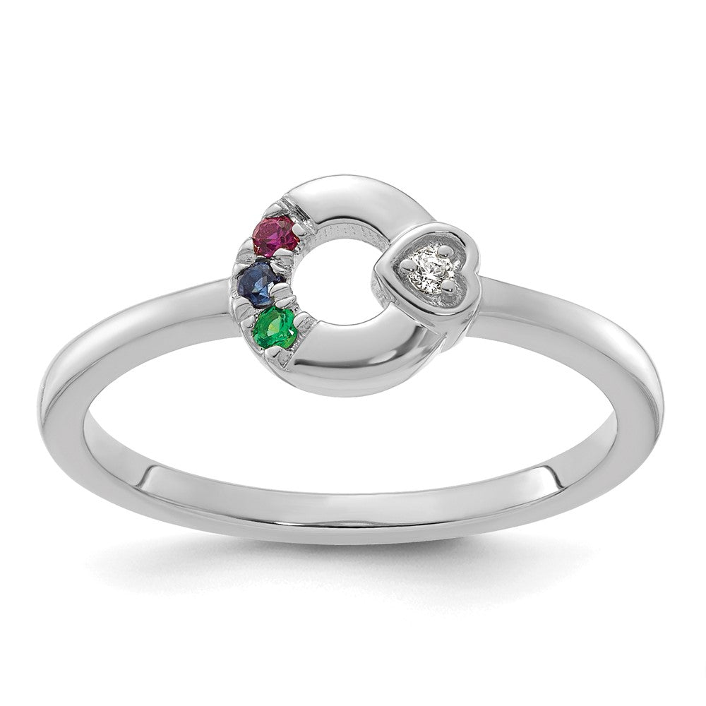 14k WG Dia. Heart w/ 3 Synthetic Birthstone Mother's Circle Ring