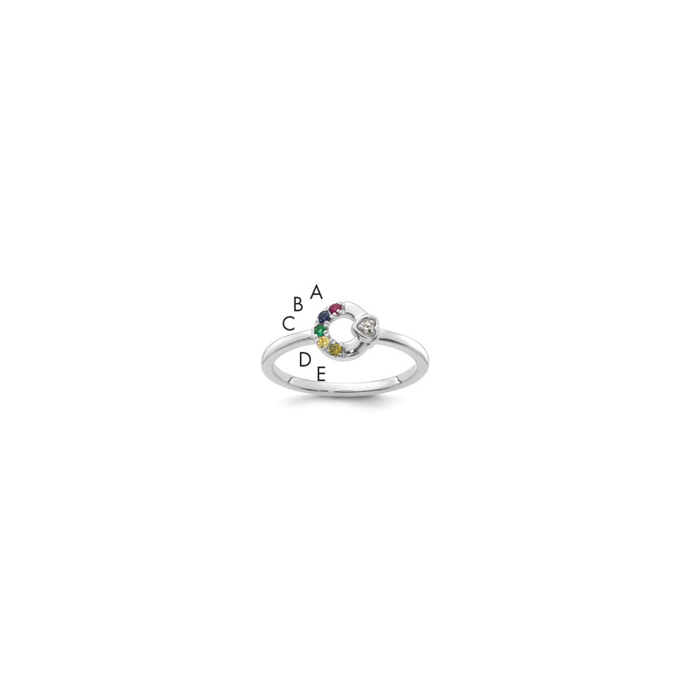 14k WG Dia. Heart w/ 5 Birthstone Mother's Circle Ring Semi-mount