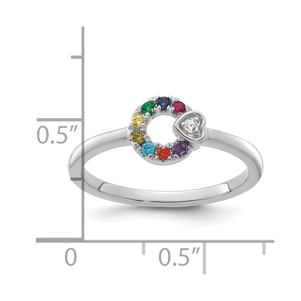 14k WG Dia. Heart w/ 8 Birthstone Mother's Circle Ring Semi-mount