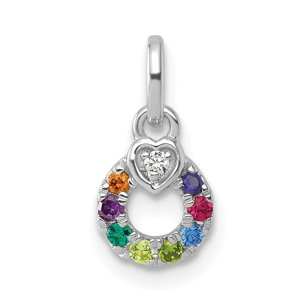 14k WG Dia. Heart w/8 Synthetic Birthstone Mother's Circle Pendant