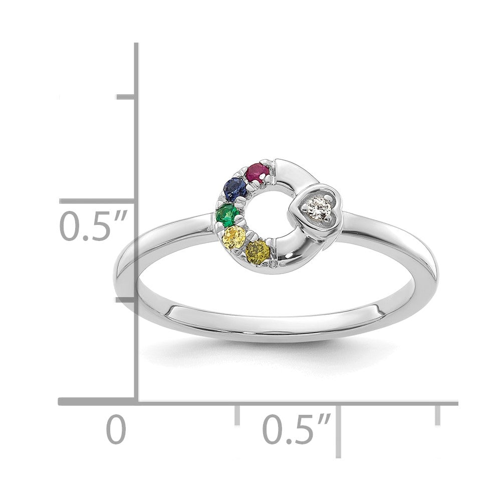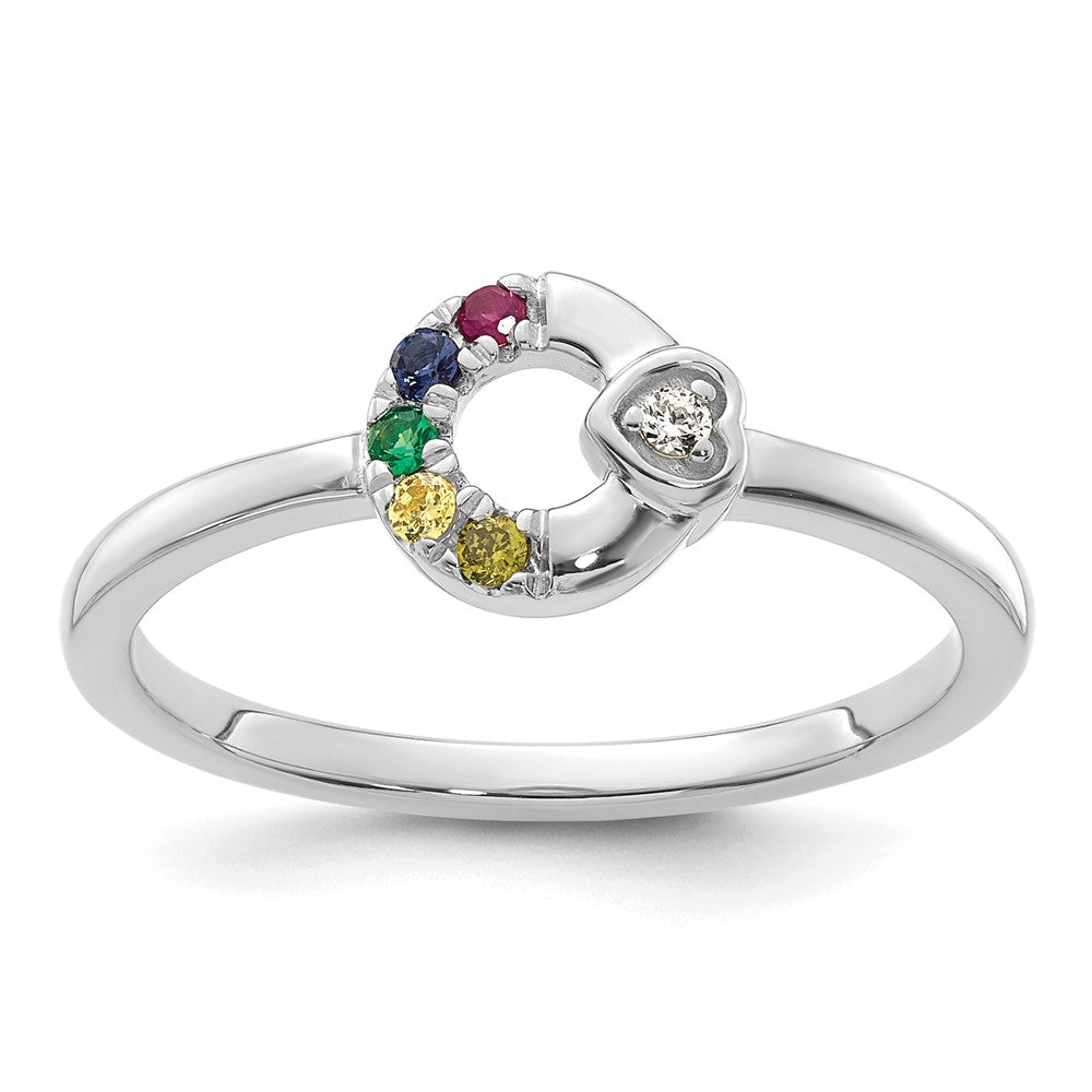 14k WG Dia. Heart with 5 Genuine Birthstone Mother's Circle Ring