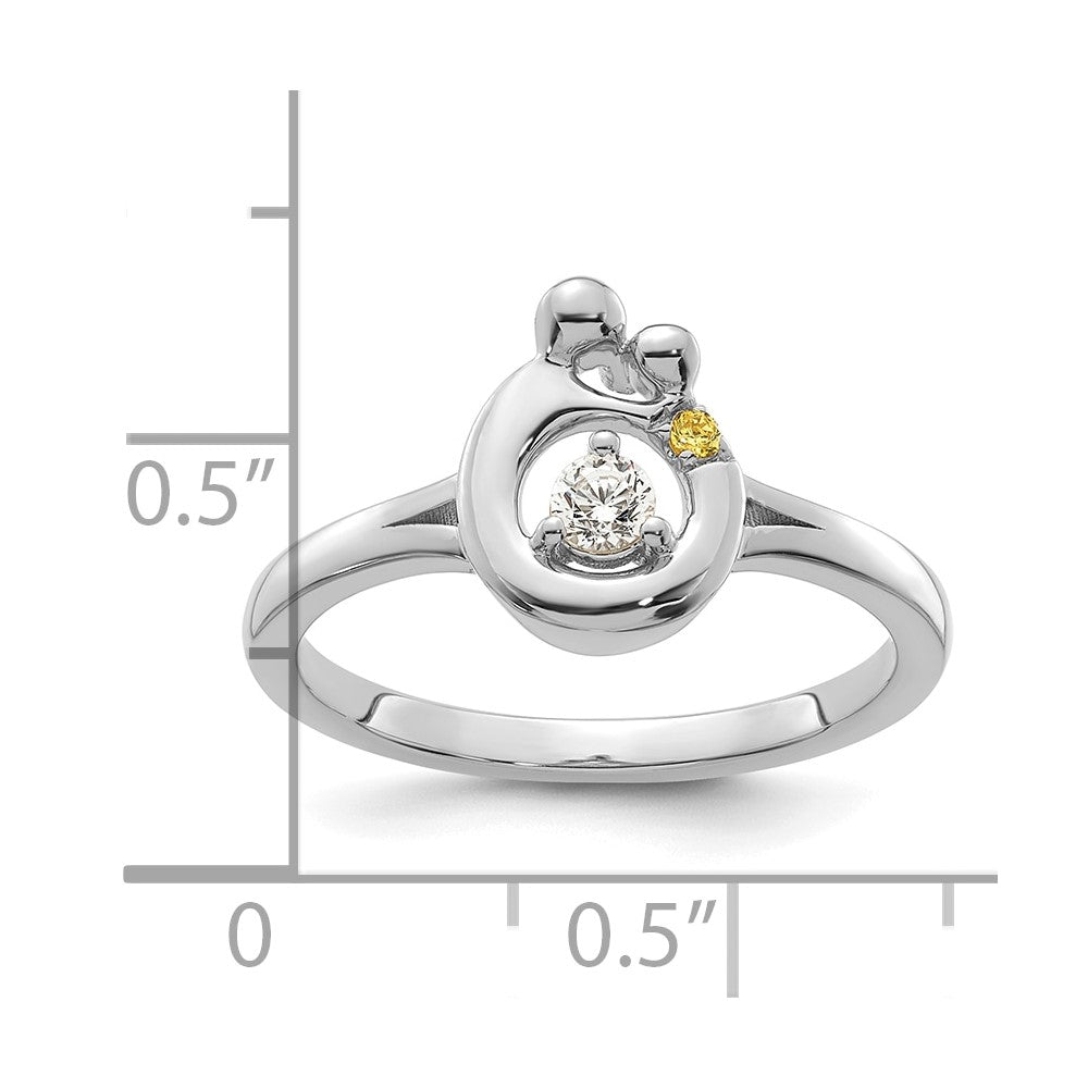 14k WG Diamond with 1 Genuine Birthstone Mother/Child Ring