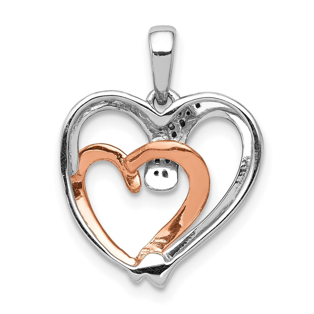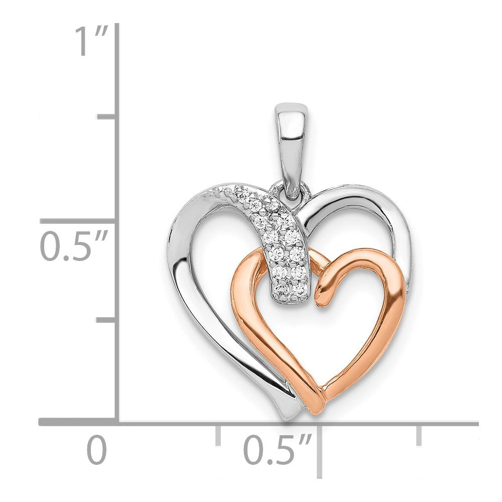 14k White and Rose Gold 1/. Diamond Double Heart Pendant