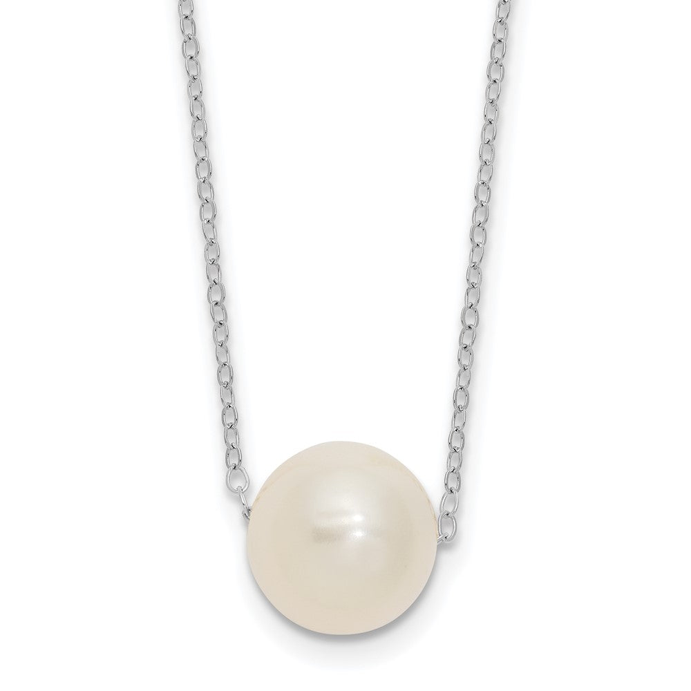 14k White Gold 10- White Near Round Freshwater Cultured Pearl Necklace