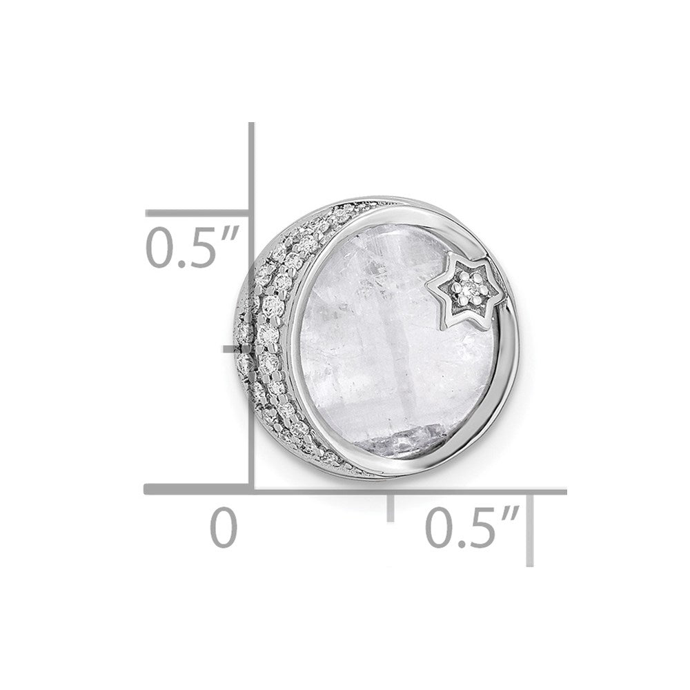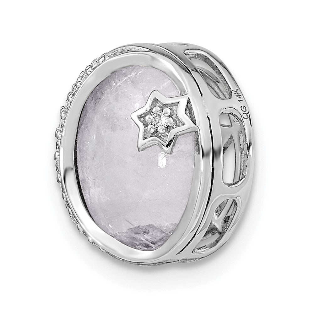 14k White Gold 1/10 carat Diamond and Moonstone Star and Moon Chain Slide