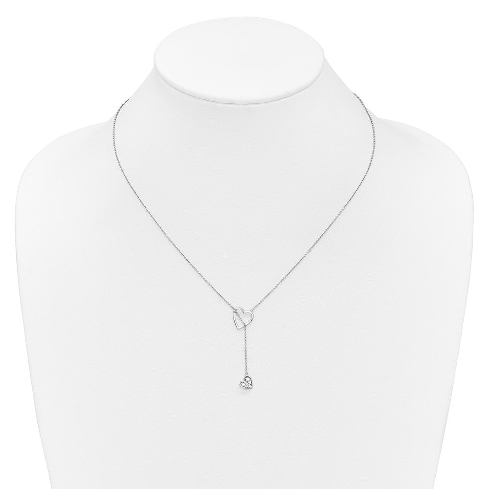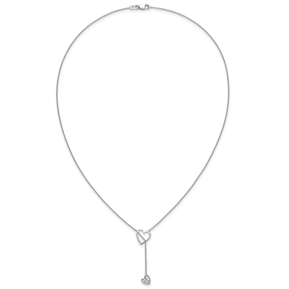 14k White Gold 1/15 carat Diamond Heart with Dangle Lariat Necklace
