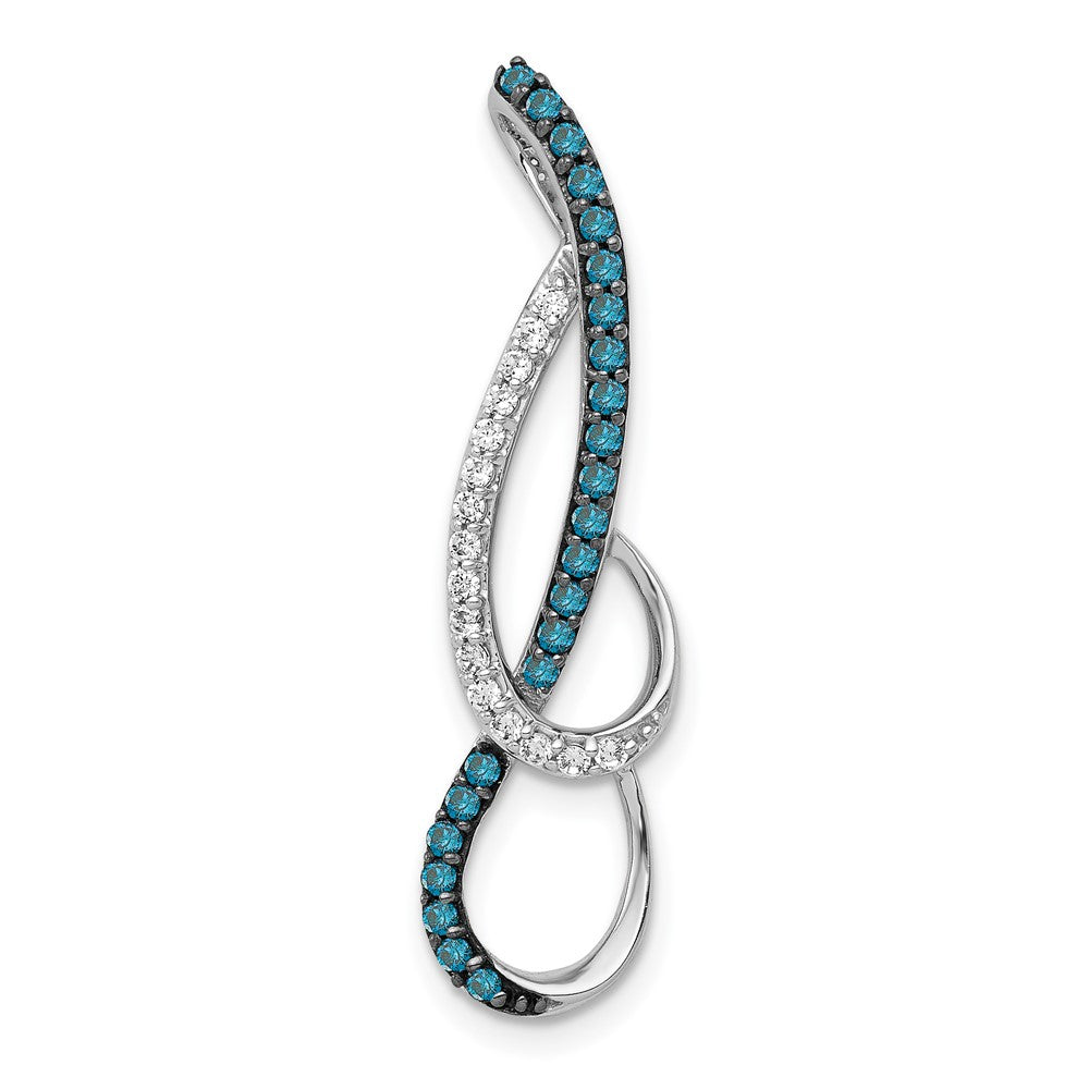 14k White Gold 1/4 carat Blue and White Diamond Fancy Chain Slide