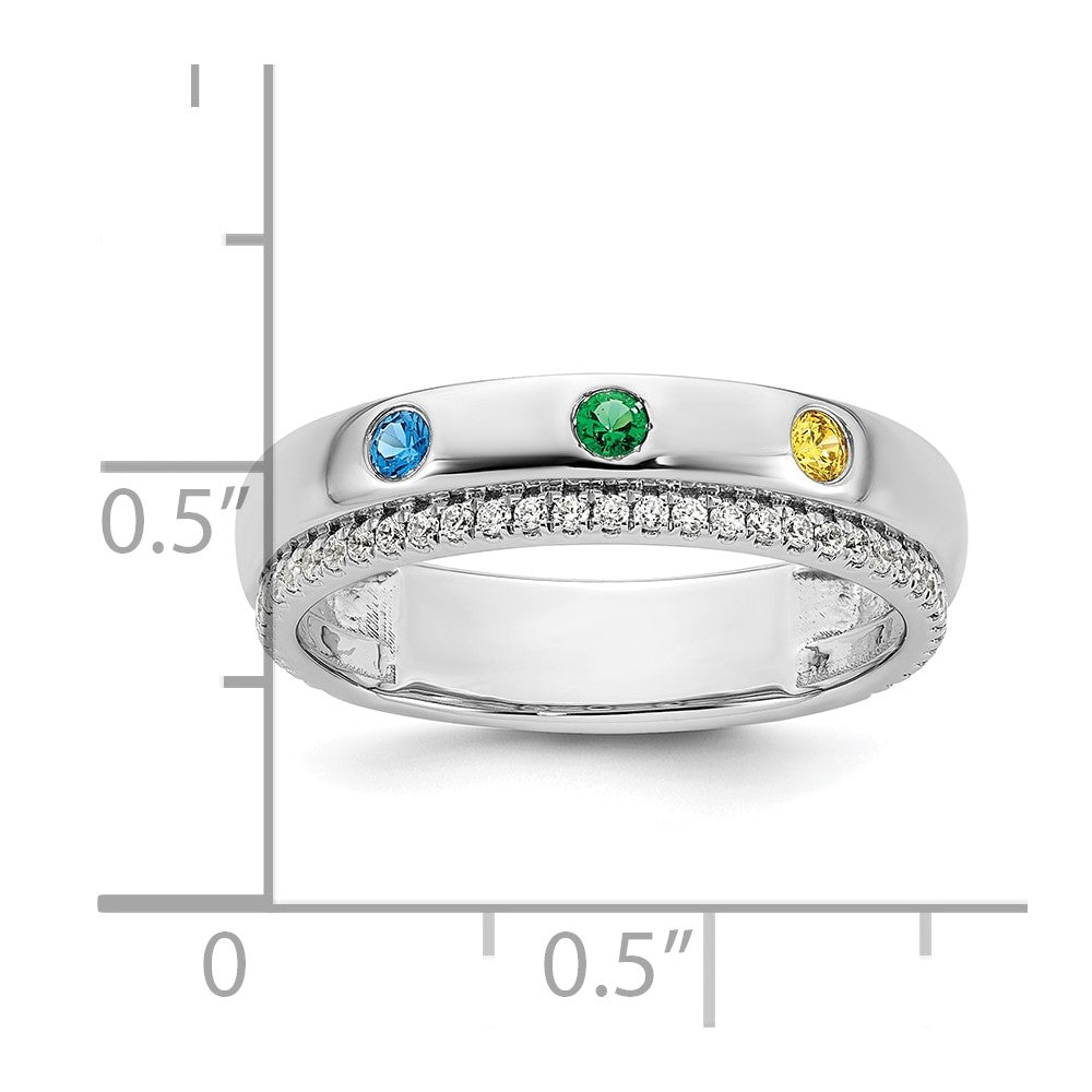 14k White Gold 3 Genuine Birthstone and Diamond Mother's Ring