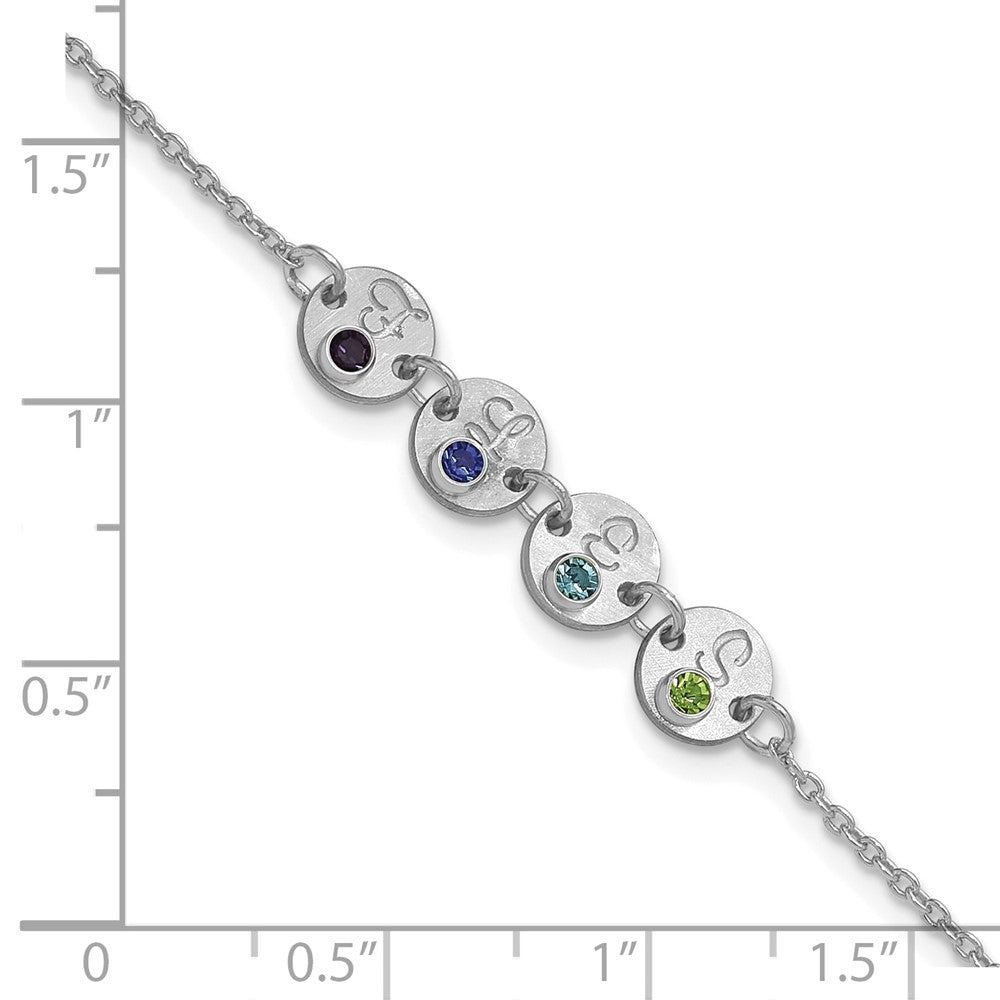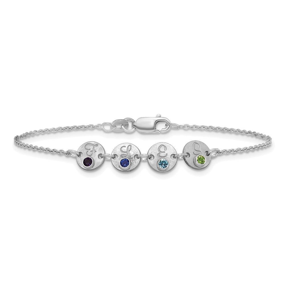 14k White Gold 4 Disc with Initial and Birthstone Bracelet
