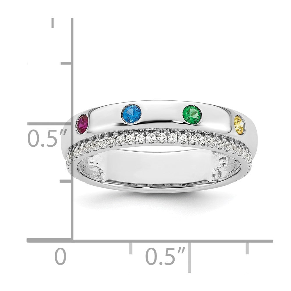 14k White Gold 4 Synthetic Birthstone and Diamond Mother's Ring
