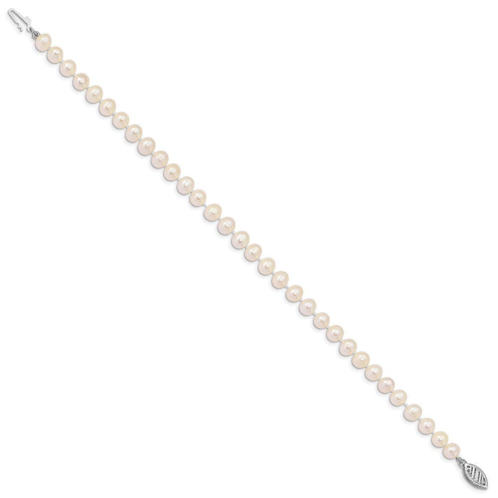 14k White Gold 5-6mm White Near Round Freshwater Cultured Pearl 7.5 inch Bracelet