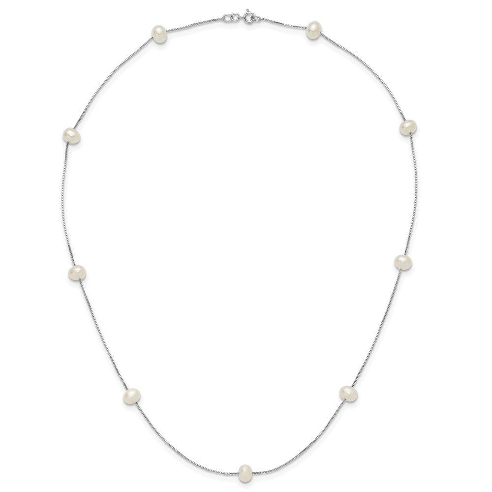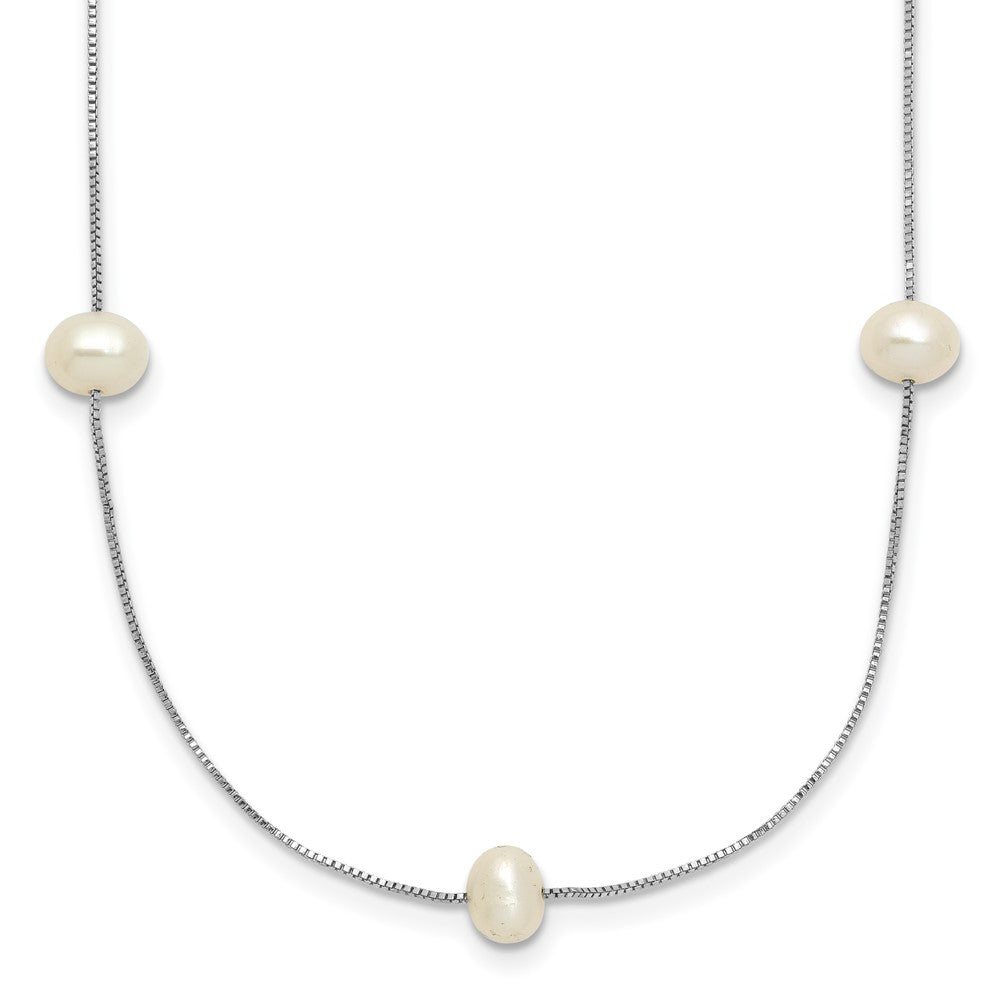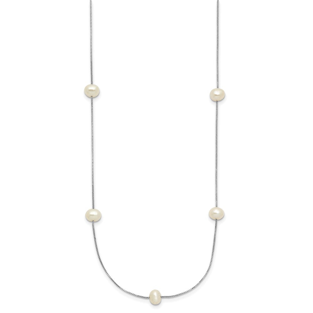 14k White Gold 5- White Near-Round Freshwater Cultured Pearl 9-Station Necklace