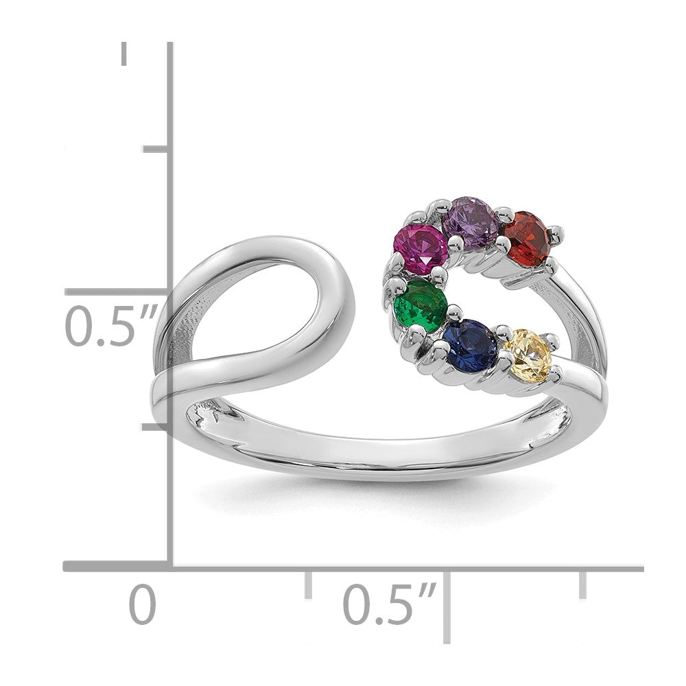 14k White Gold 6 Synthetic Birthstone Mother's Wrap Ring