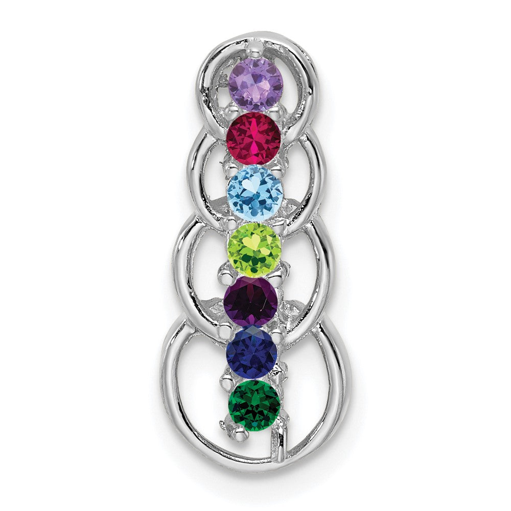 14k White Gold 7 Genuine Stone Family Pendant