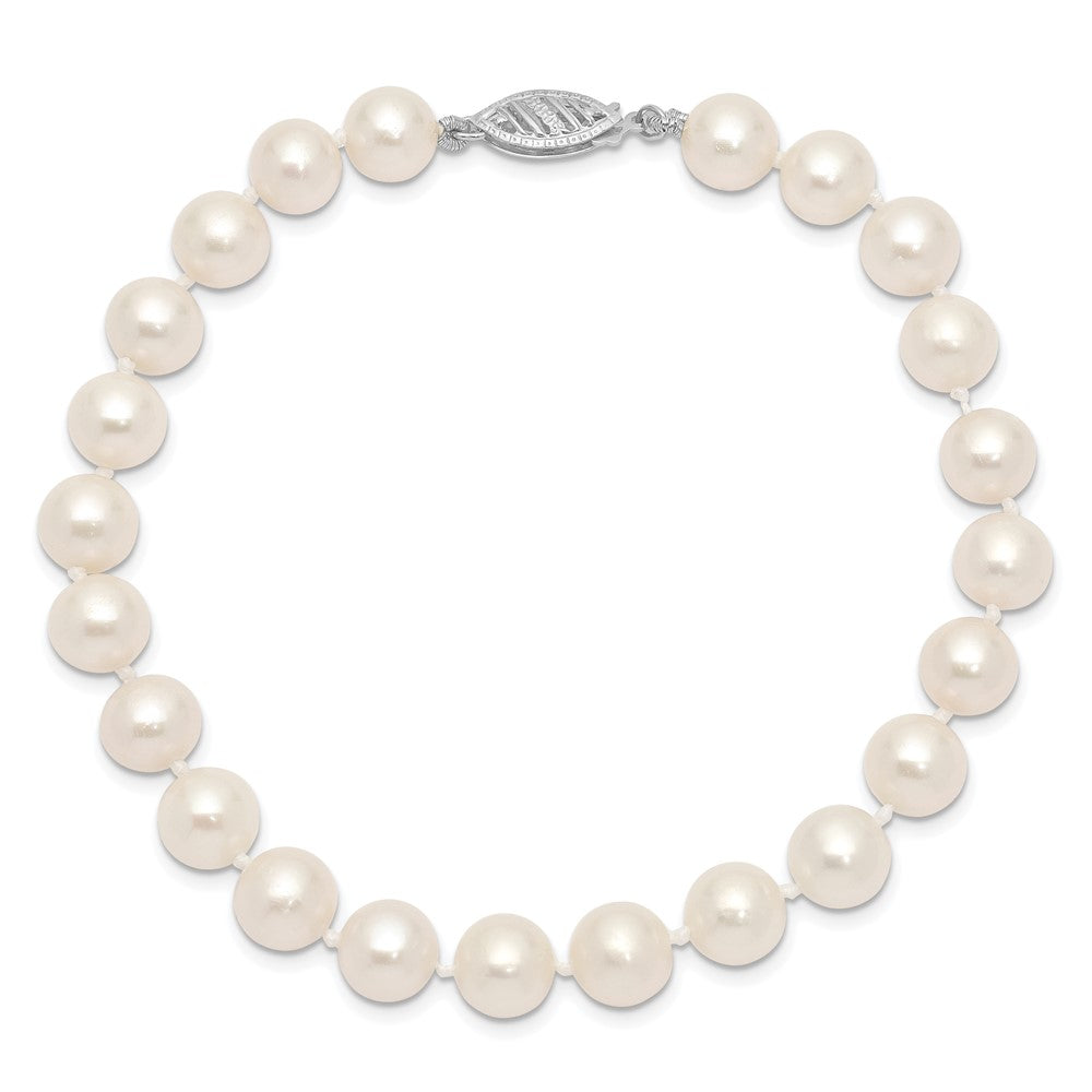 14k White Gold 7-8mm White Near Round Freshwater Cultured Pearl 8.25 inch Bracelet