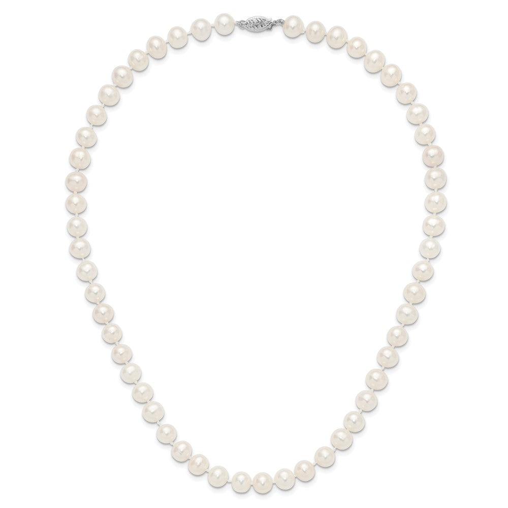 14k White Gold 7-8mm White Near Round Freshwater Cultured Pearl 20 inch Necklace