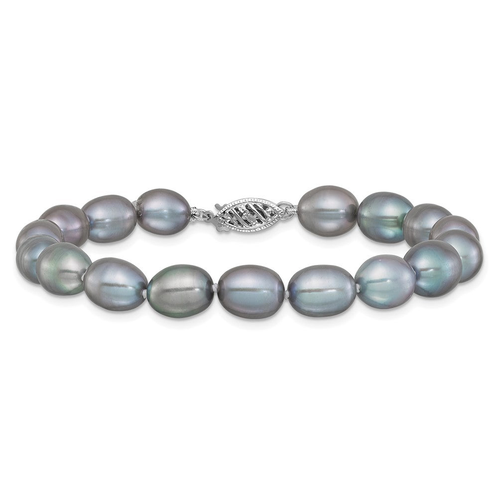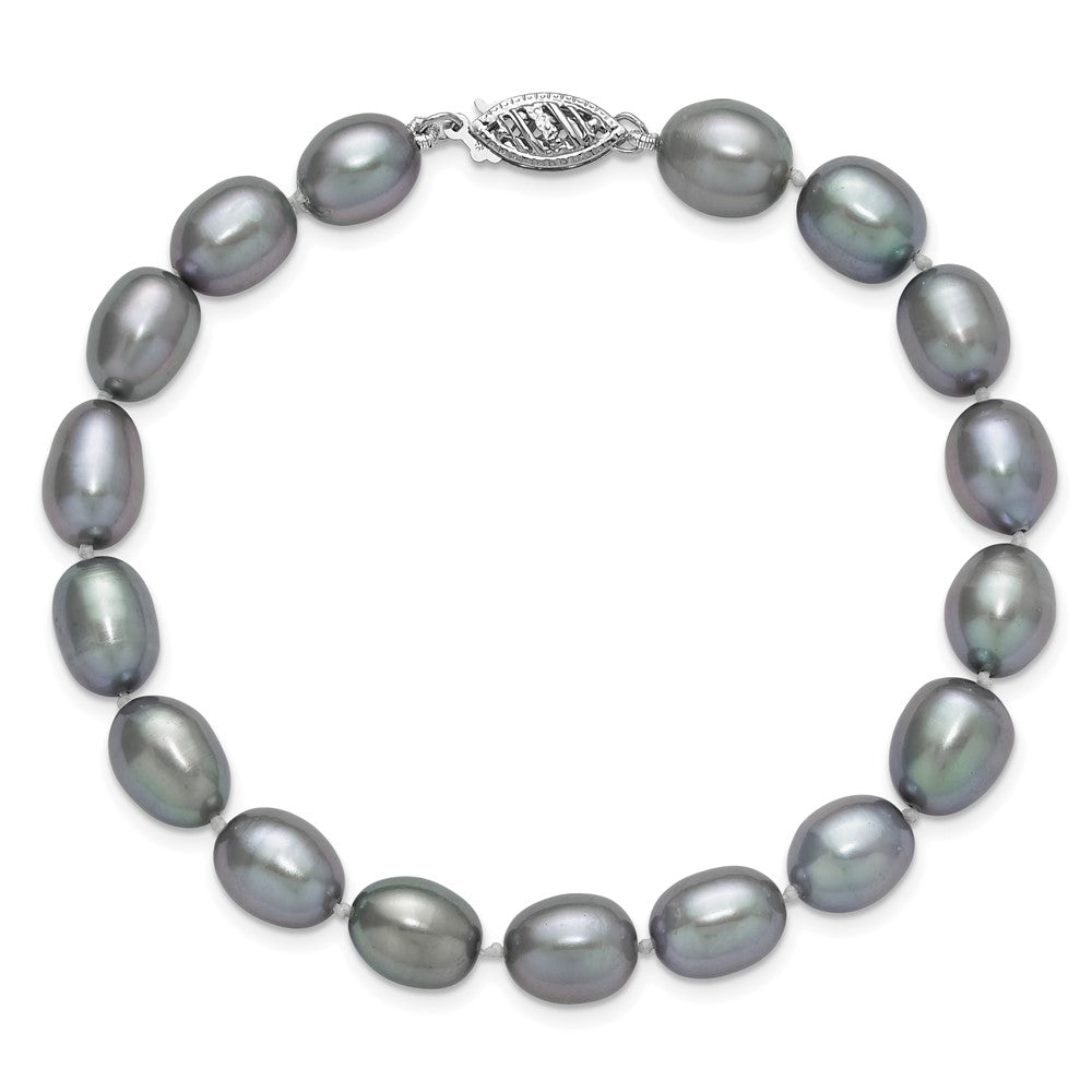 14k White Gold 8- Grey Rice Freshwater Cultured Pearl 7. Bracelet