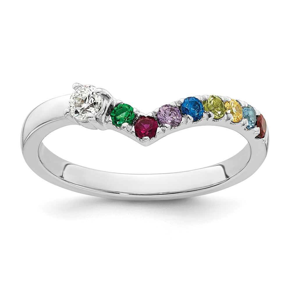14k White Gold 8 Synthetic Birthstone with Diamond Mother's Ring