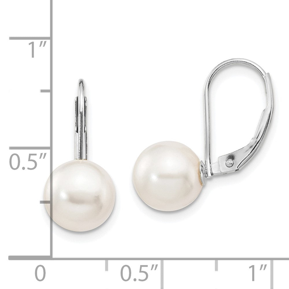 14k White Gold 8-9mm White Round Akoya Saltwater Cultured Pearl Leverback Earrings