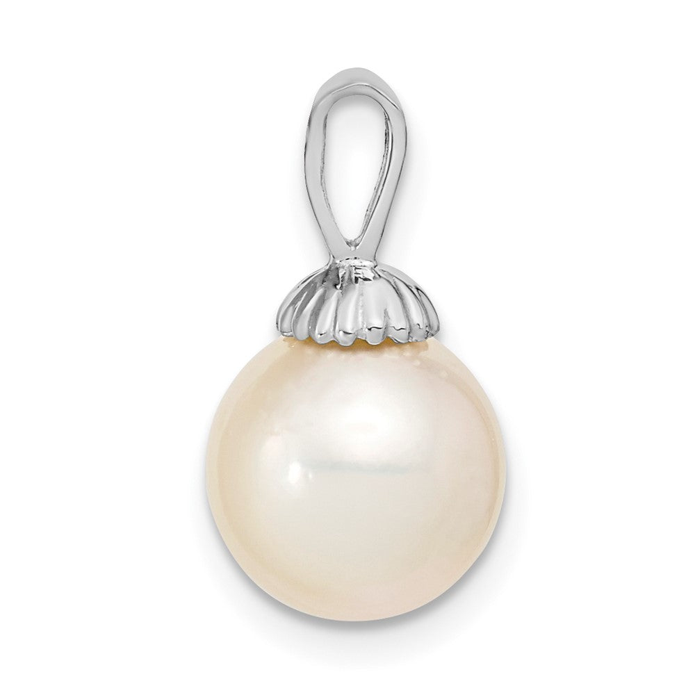 14k White Gold 9- Round White South Sea Saltwater Pearl Pendant