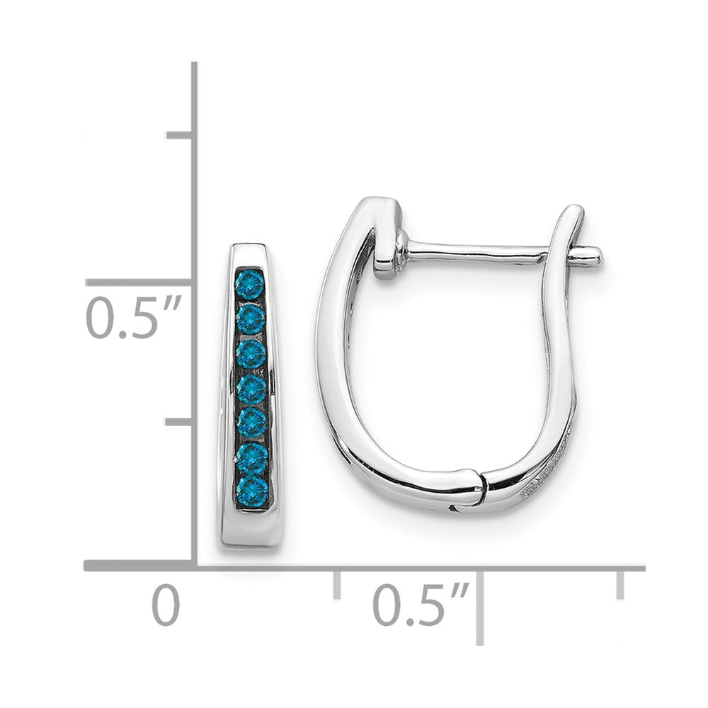 14k White Gold Blue Diamond Hinged Hoop Earrings