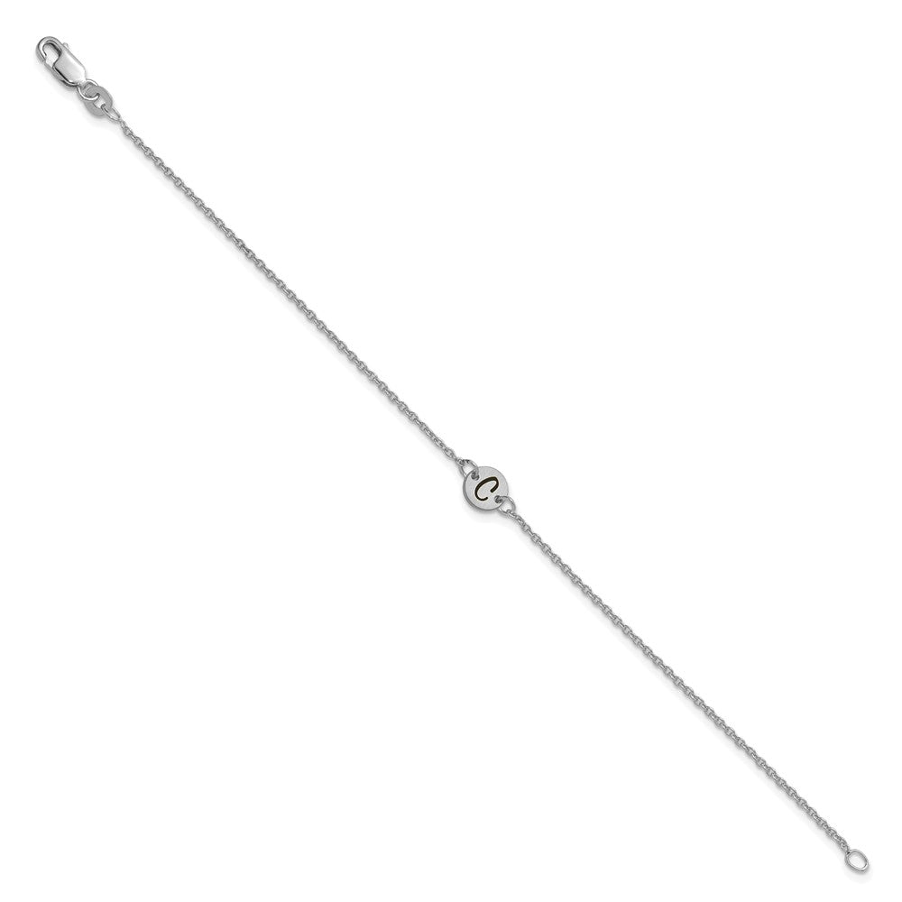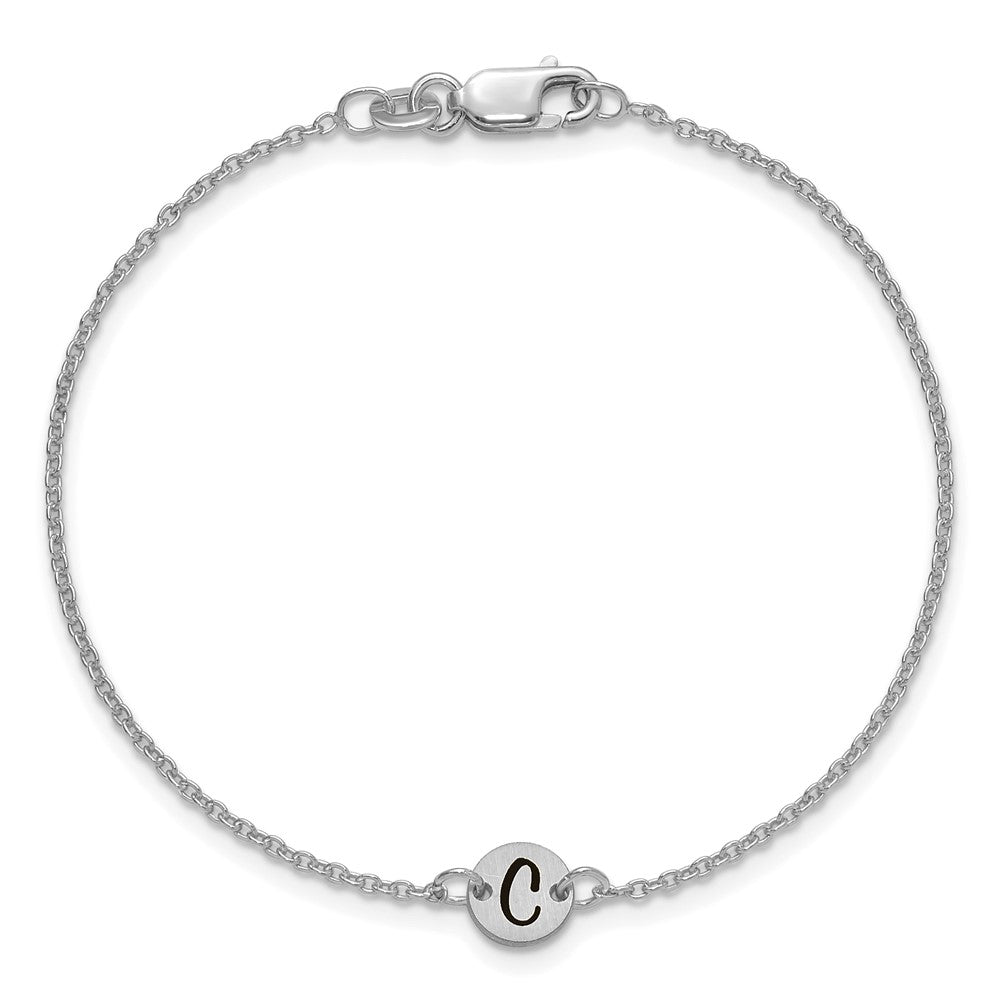 14k White Gold Brushed 1 Station Disc with Epoxy Initial Bracelet