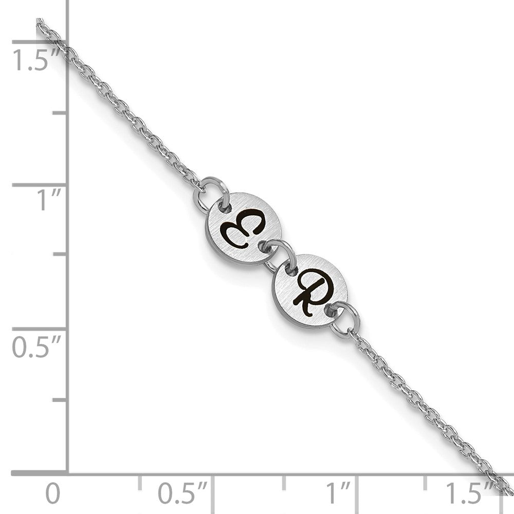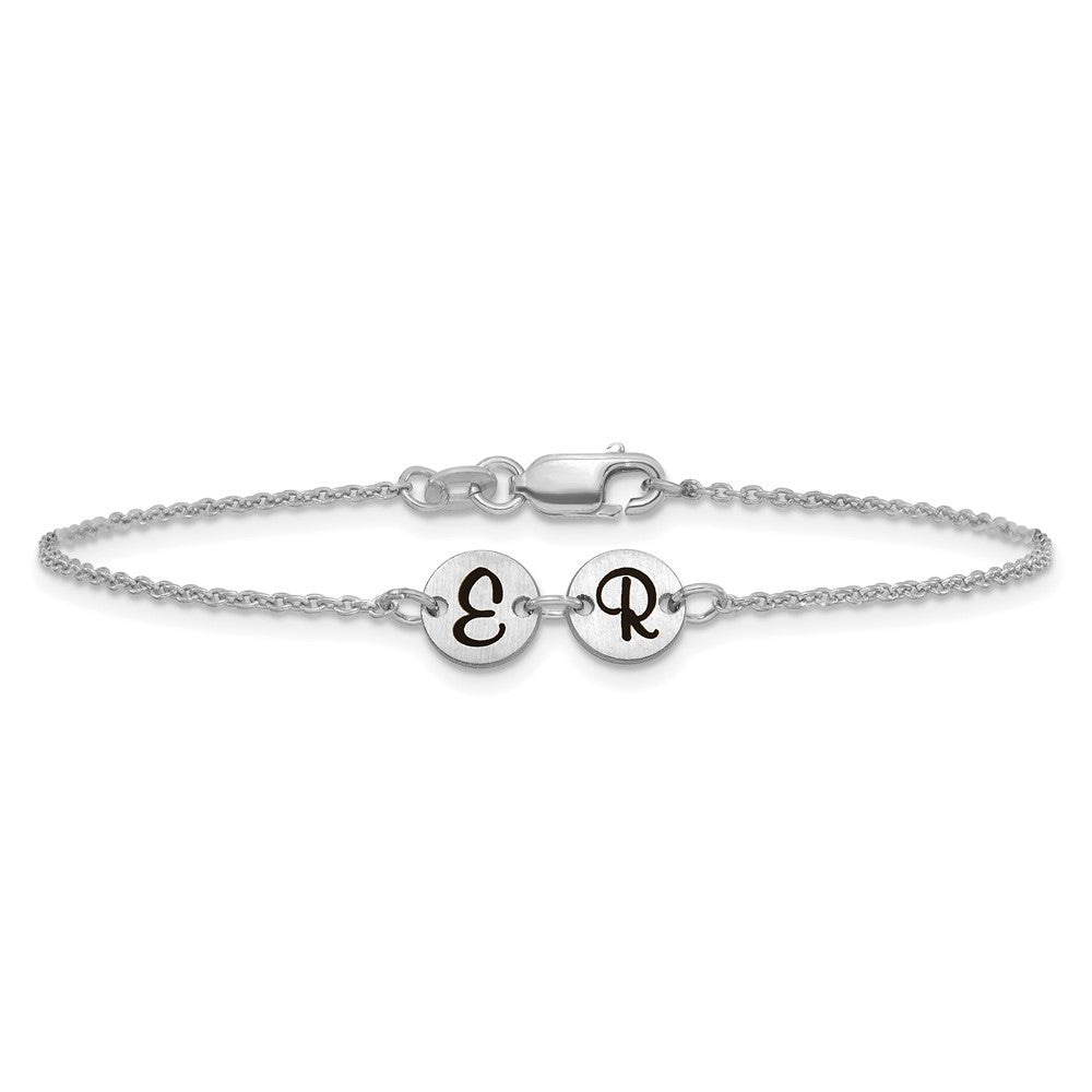 14k White Gold Brushed 2 Station Disc with Epoxy Initial Bracelet