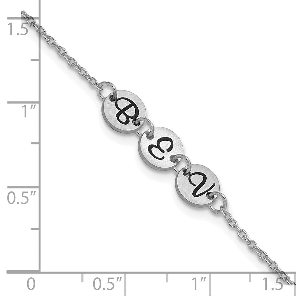 14k White Gold Brushed 3 Station Disc with Epoxy Initial Bracelet