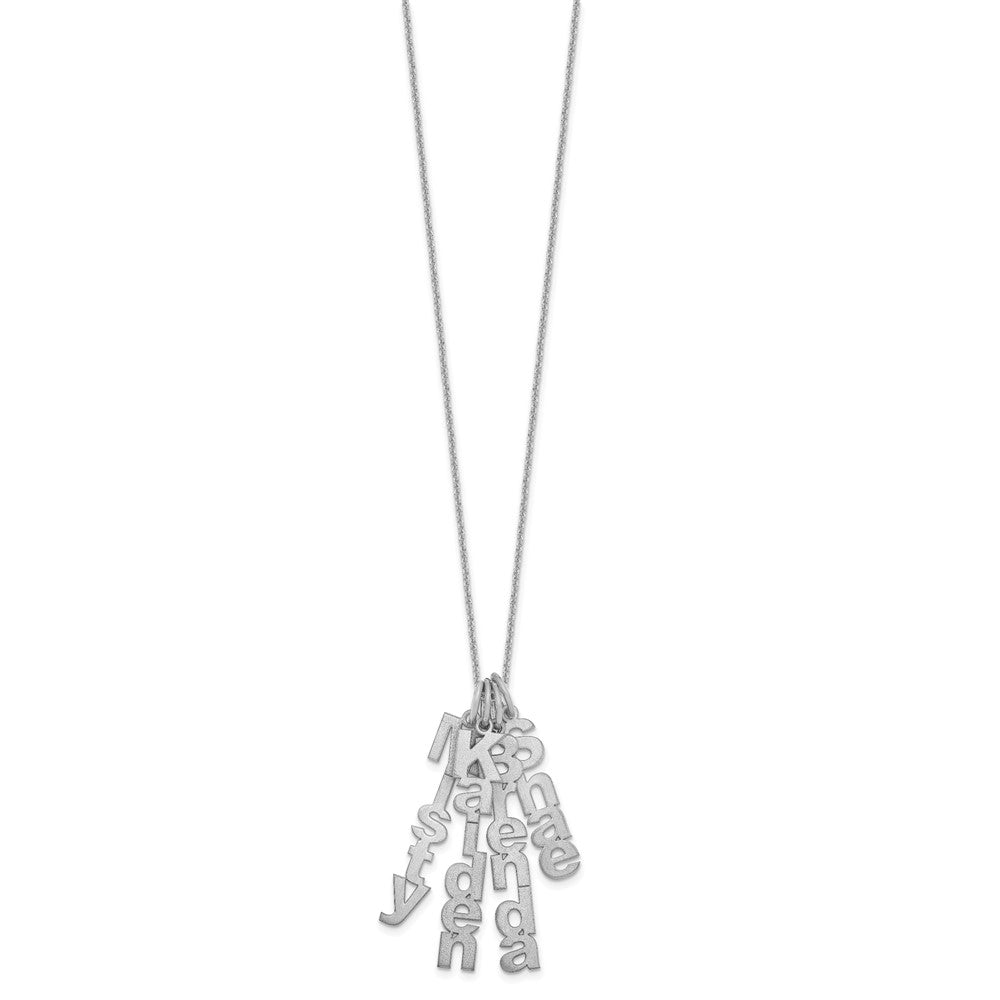 14k White Gold Brushed Vertical 4 Name Charm Necklace