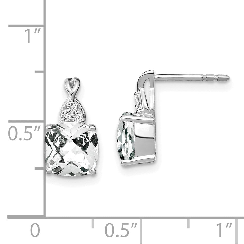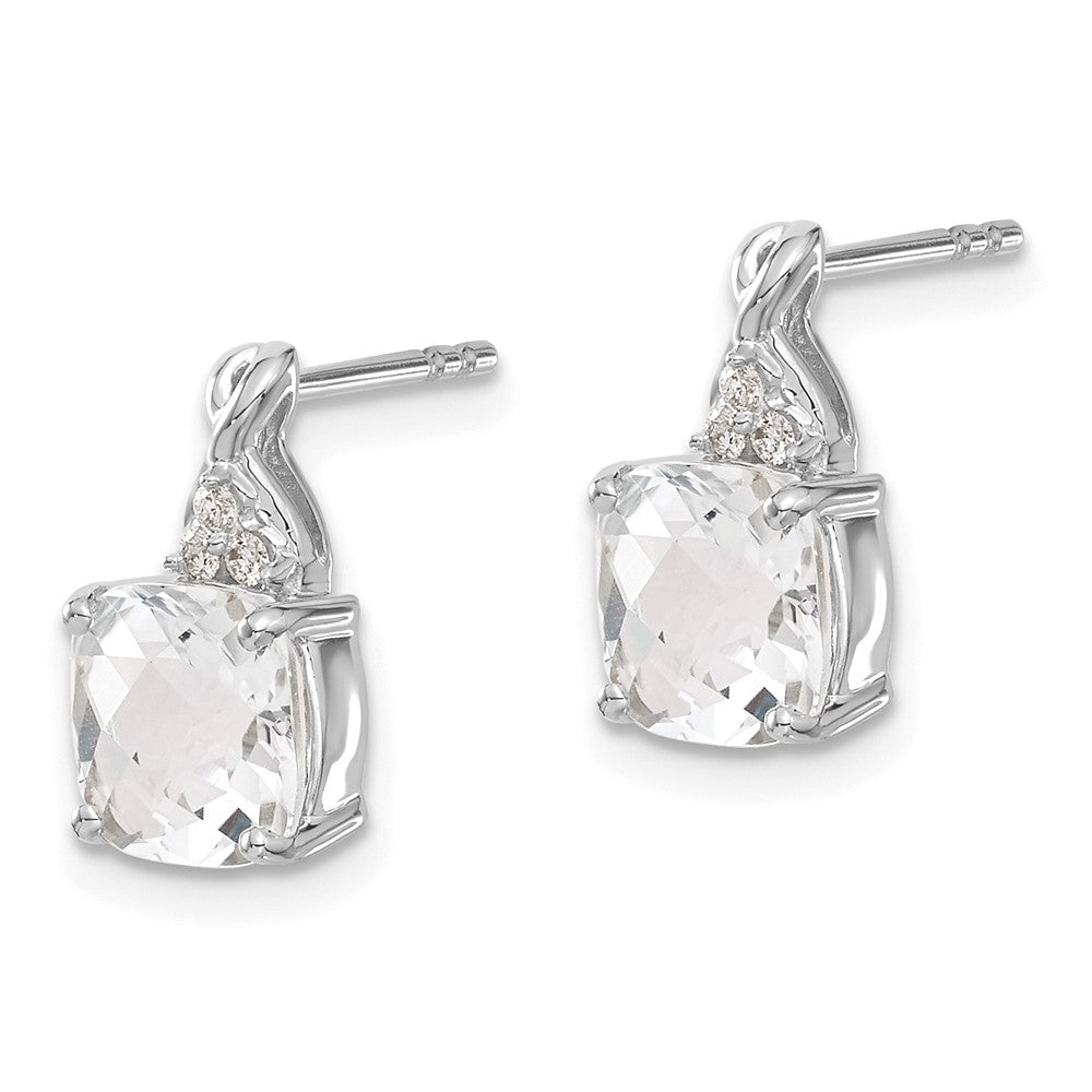 14K White Gold Checkerboard White Topaz and Diamond Earrings