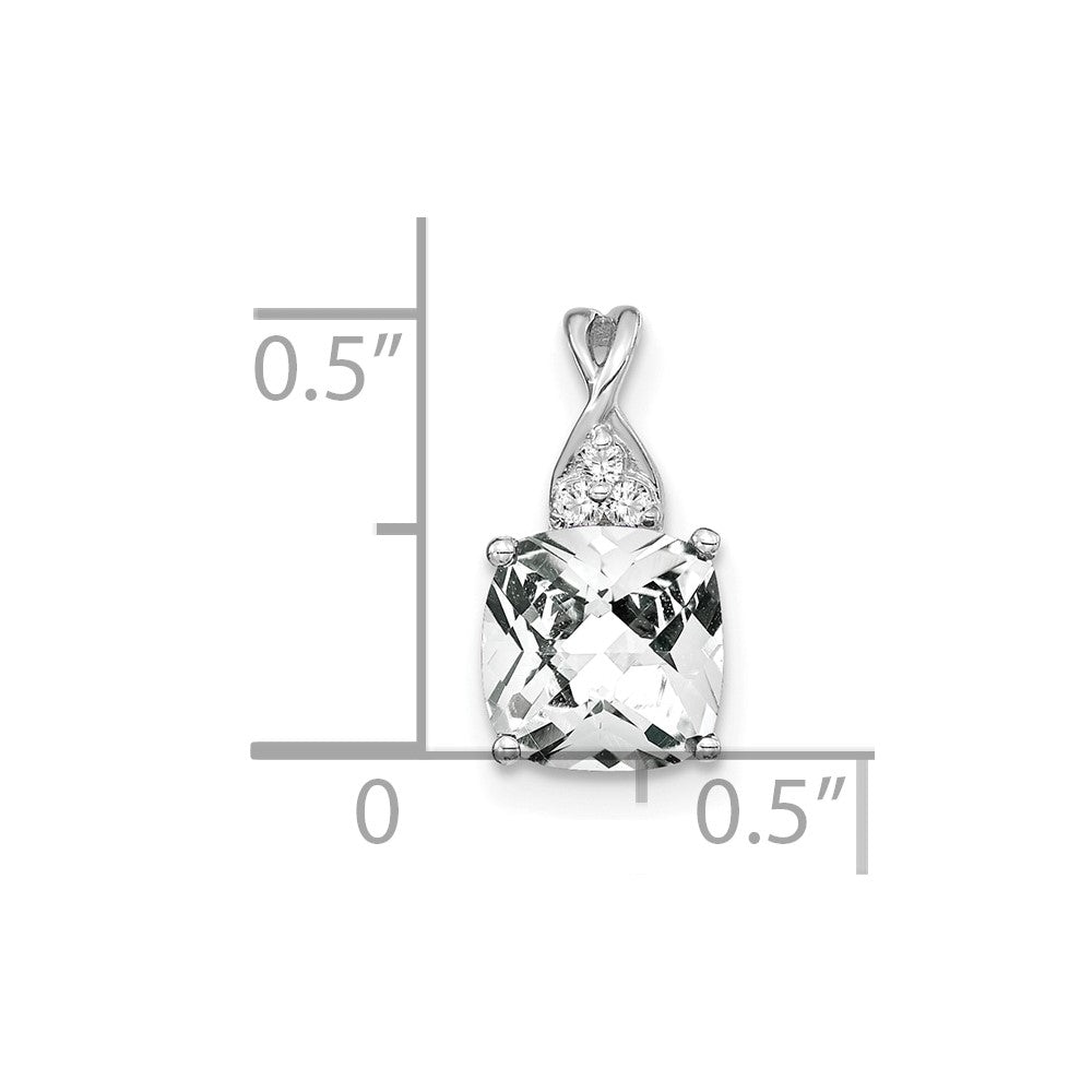 14K White Gold Checkerboard White Topaz and Diamond Pendant