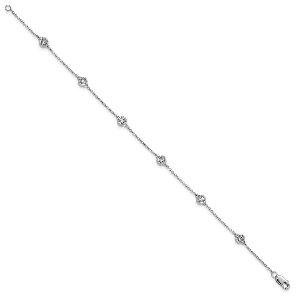 14k White Gold Complete 1/3 carat Bezel-set Diamond and Cable Chain 6-Station Bracelet